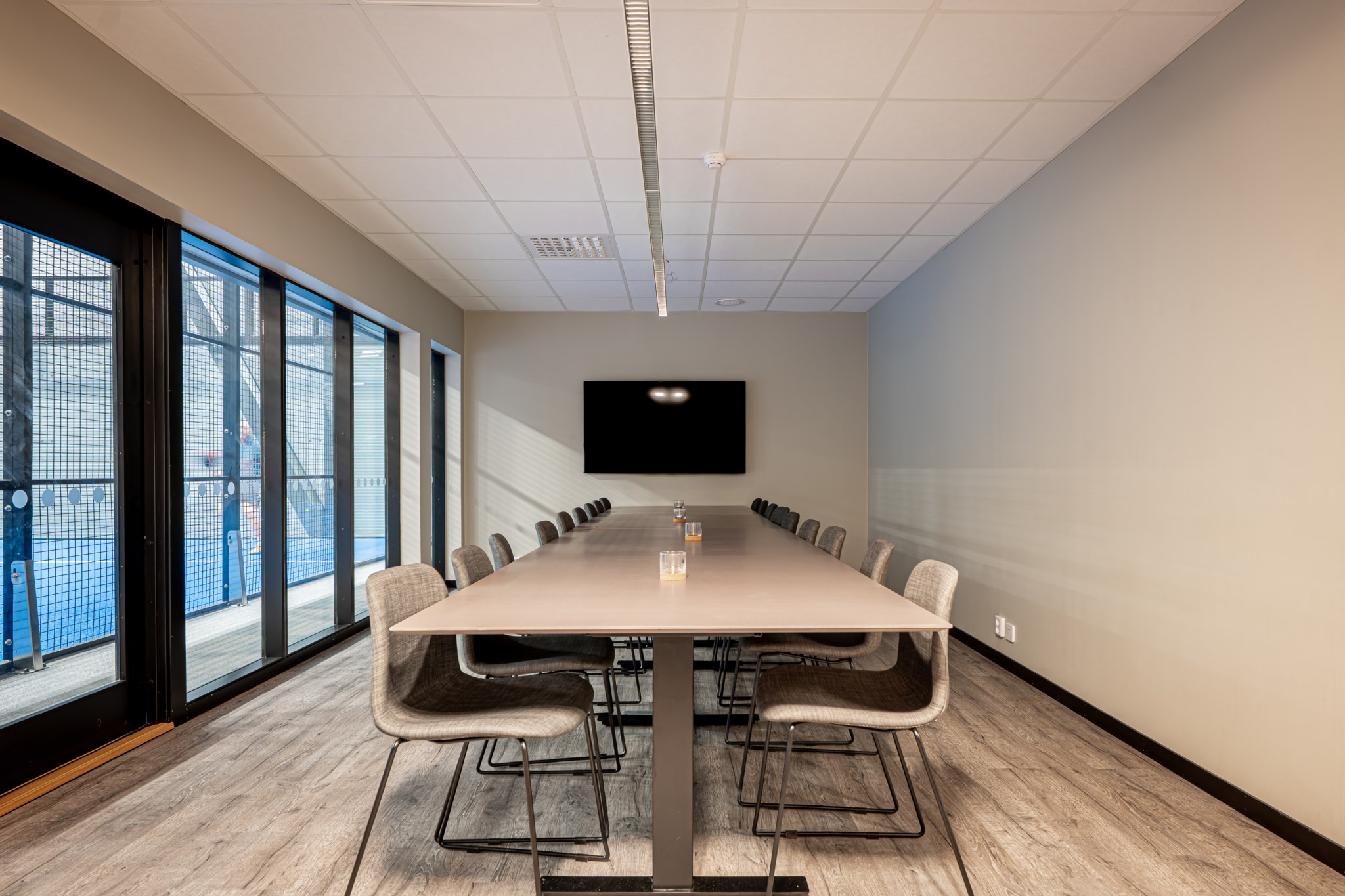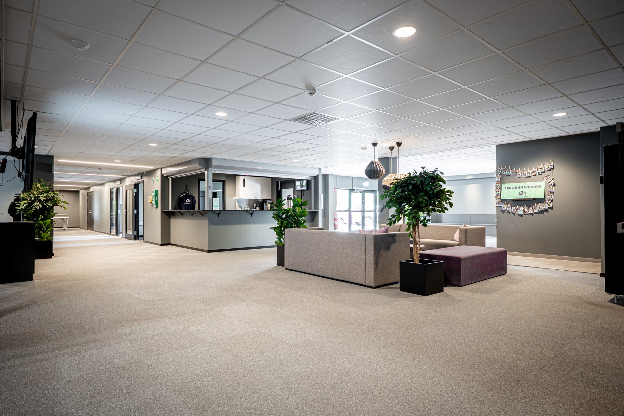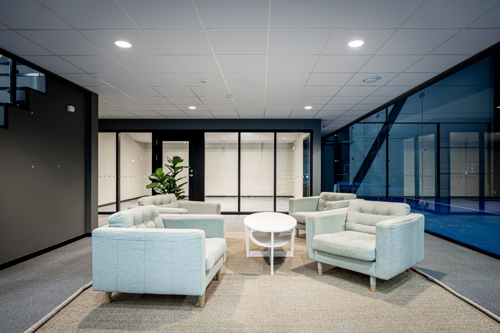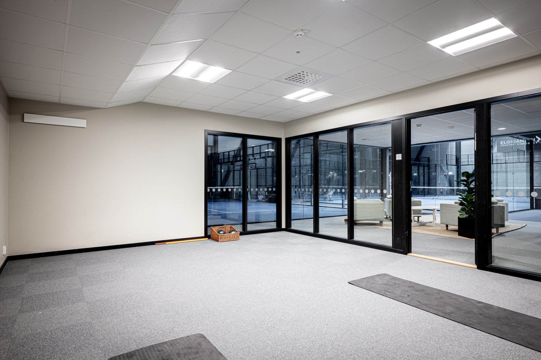 Hallen som uppfördes 2021-22 håller en genomgående hög nivå med entréplan som är fördelat genom 9 padelbanor, reception,
