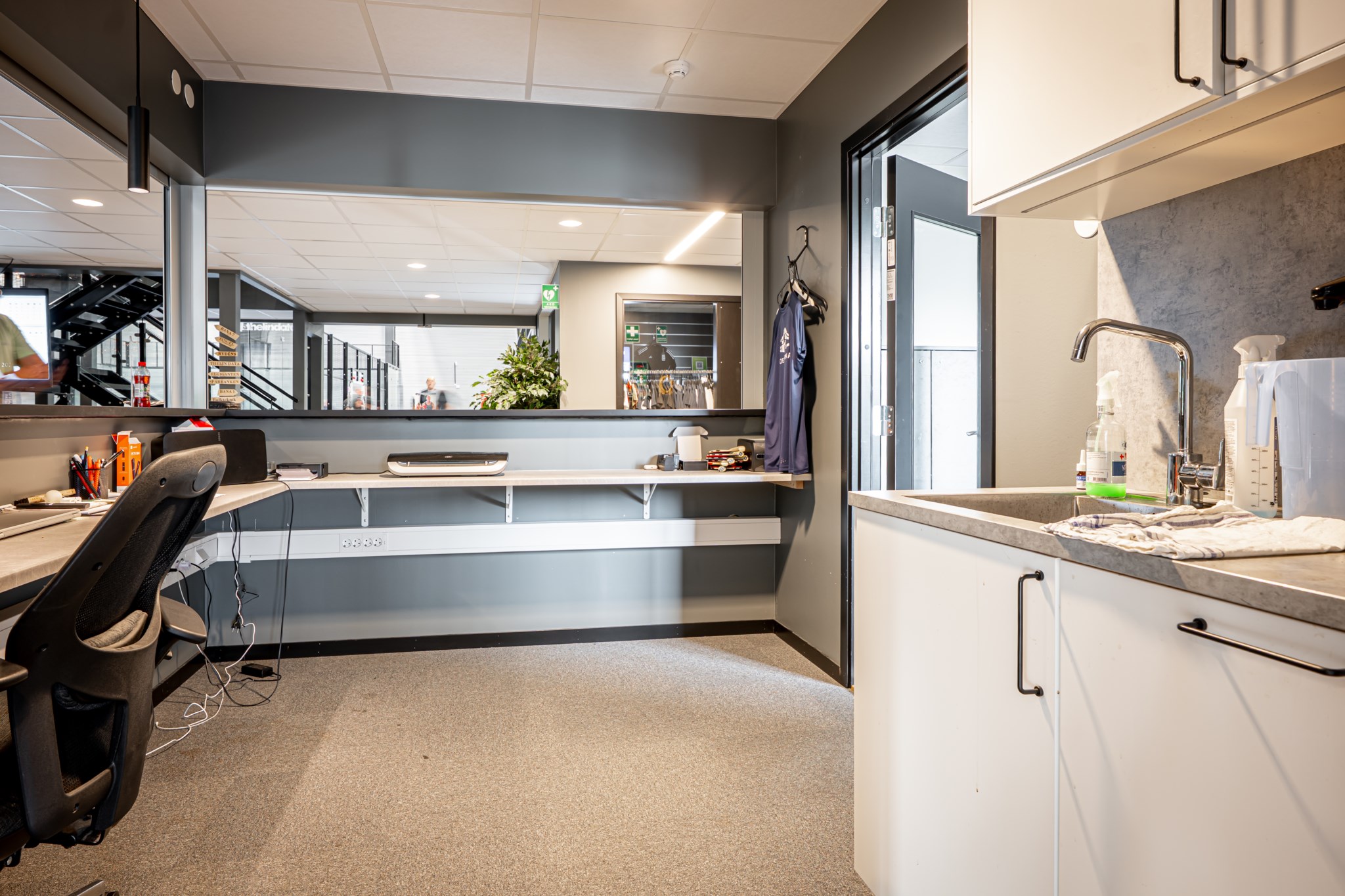 omklädningsrum, kontor, förråd och teknikrum. På entresolplanet finns det i dagsläget tre banor.