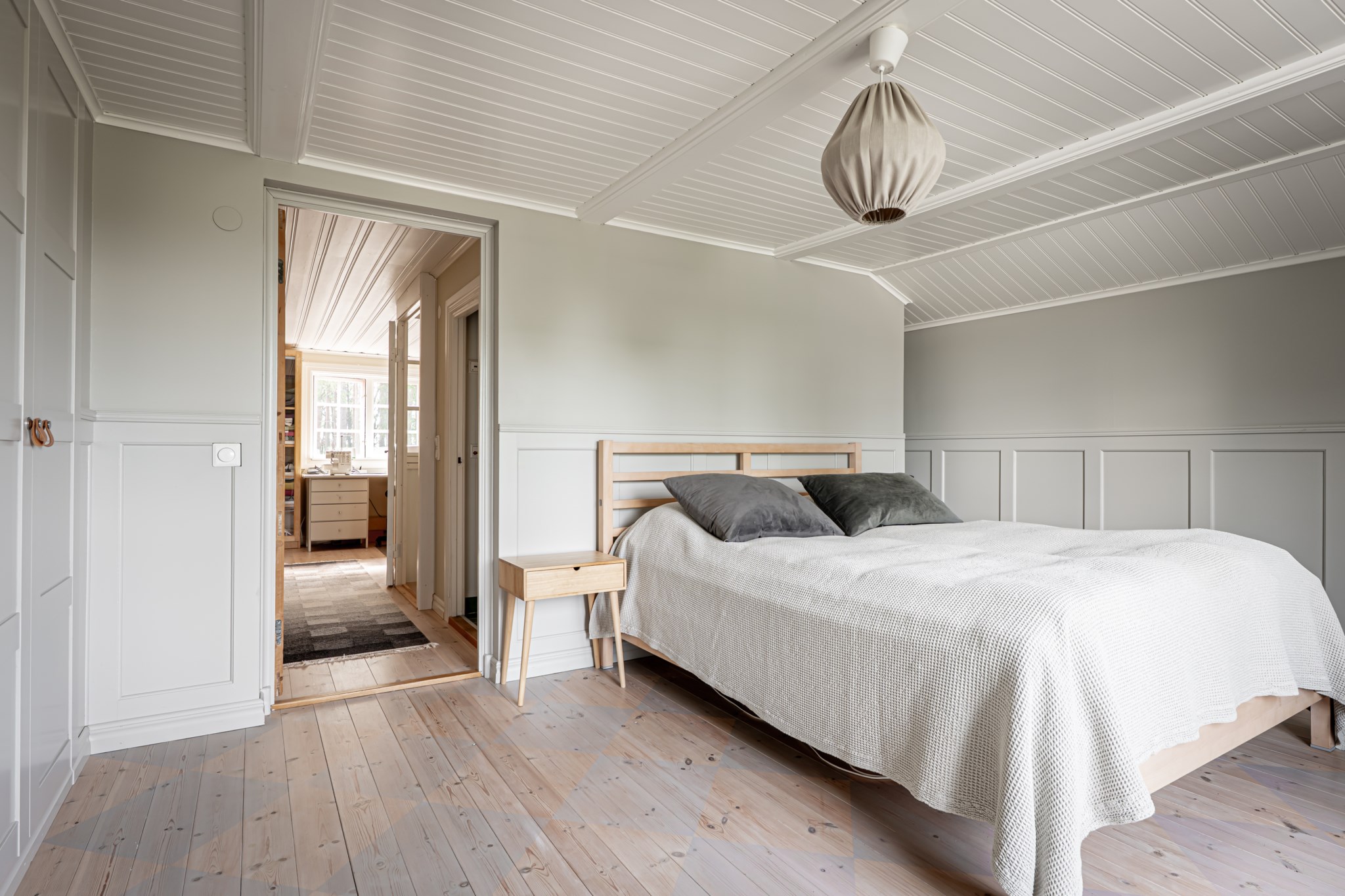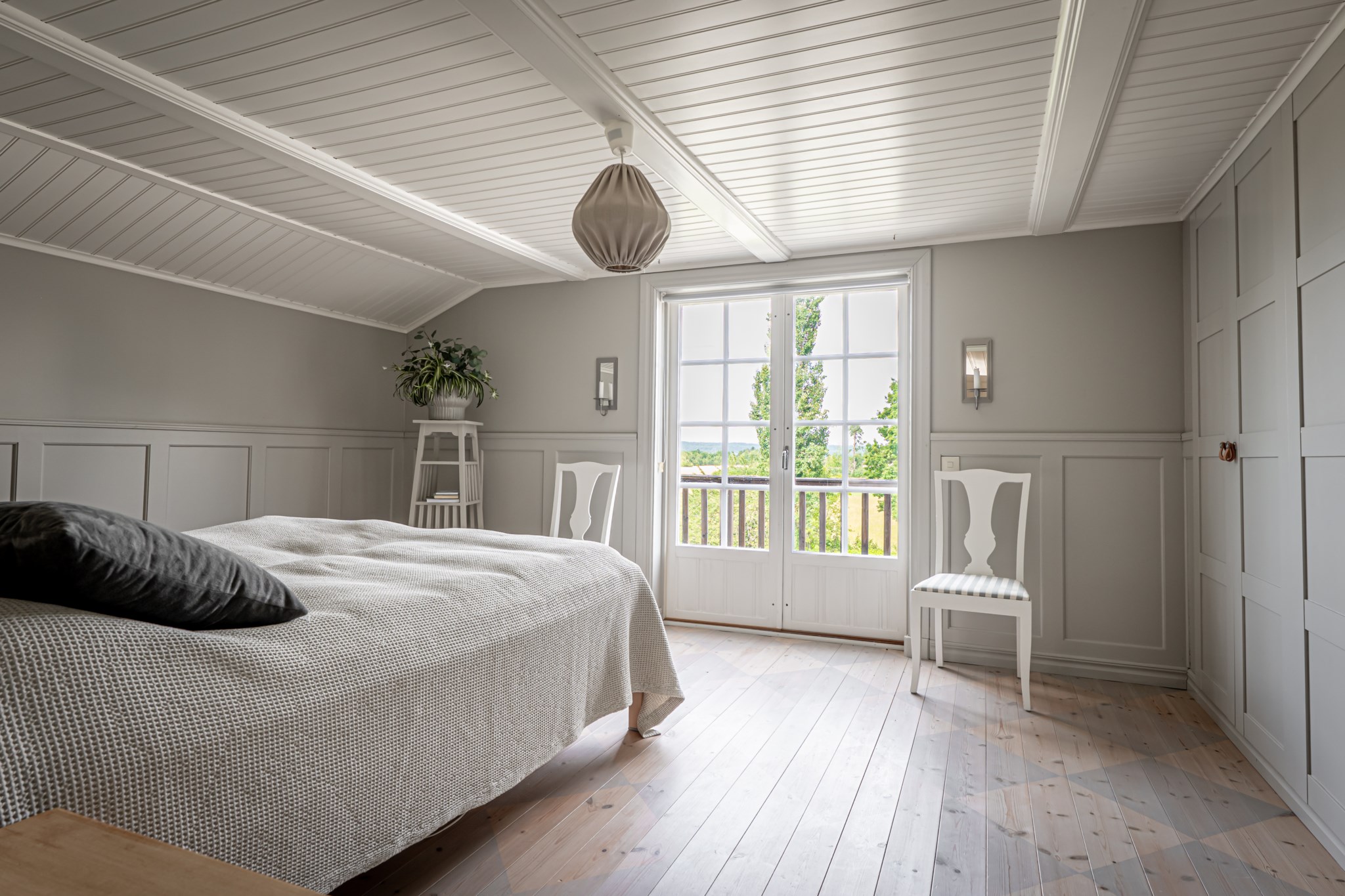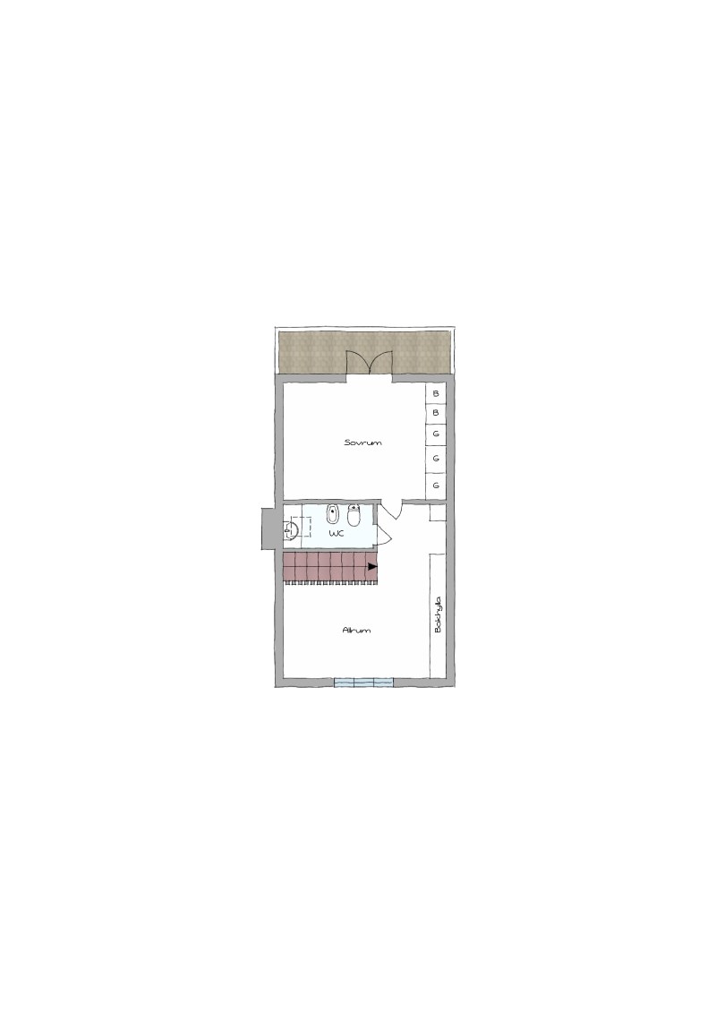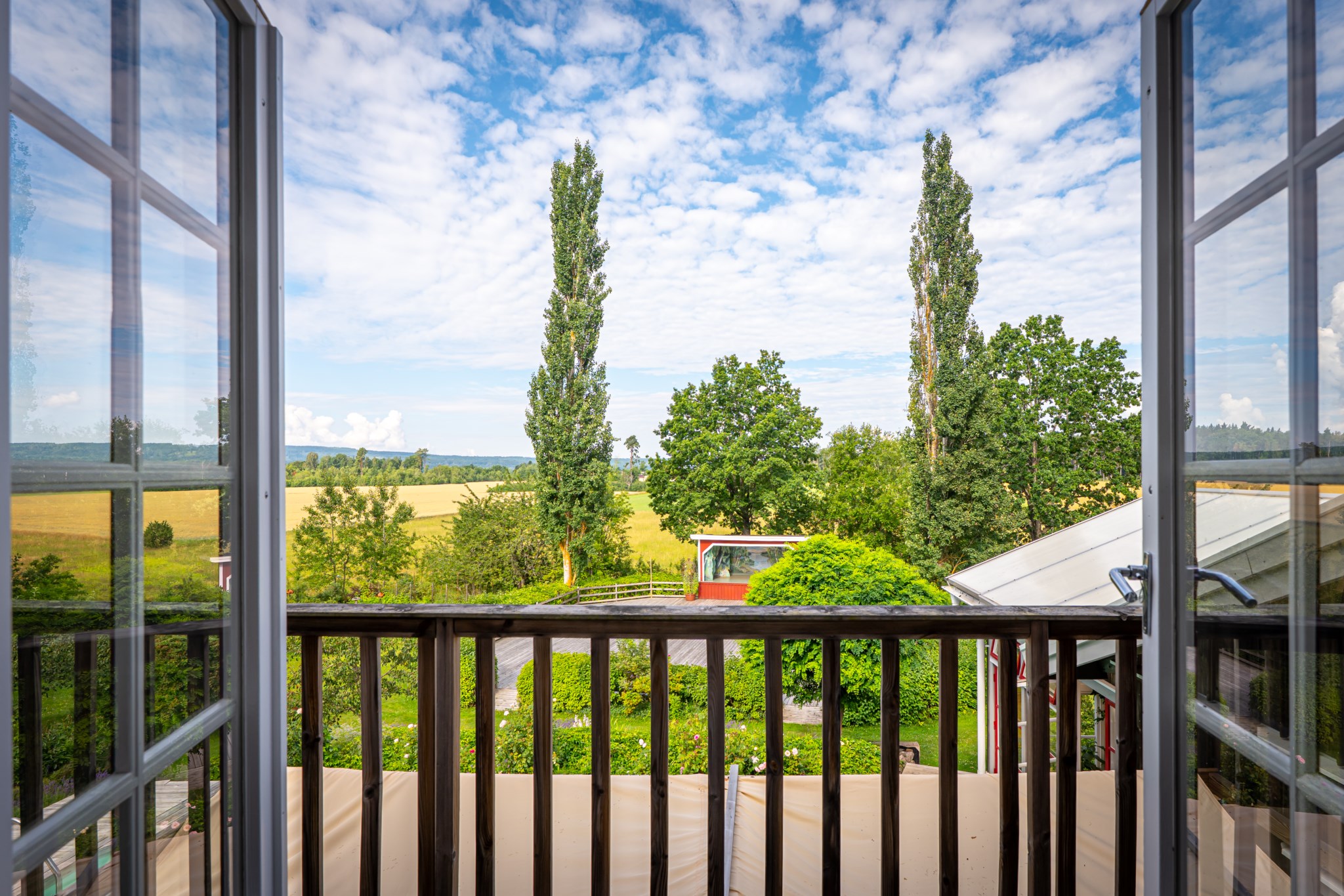 En tappa upp finns ett allrum/arbetsrum samt WC och ett härligt sovrum med balkong där man kan avnjuta när solen går ner över Billingen i väster.