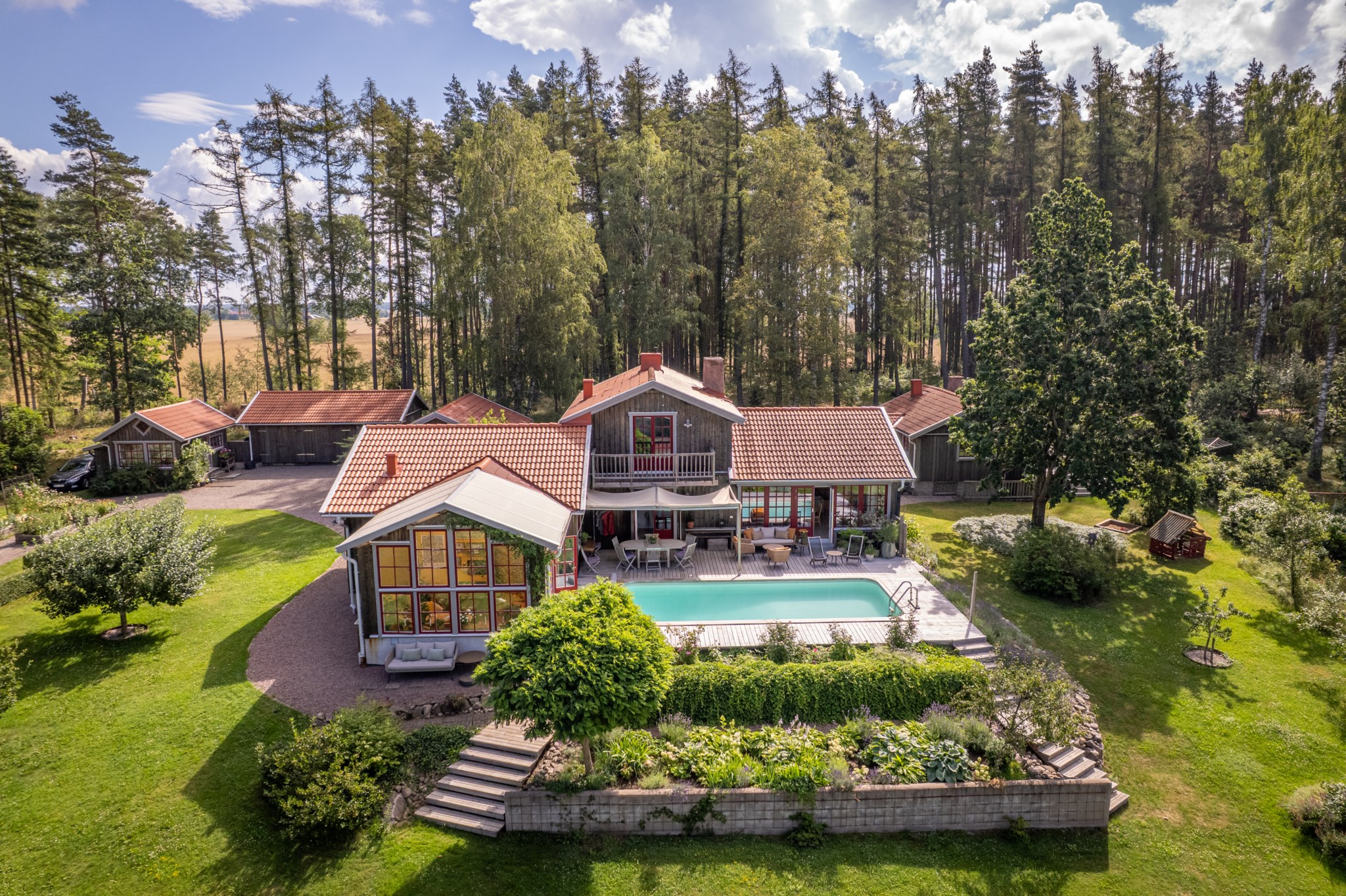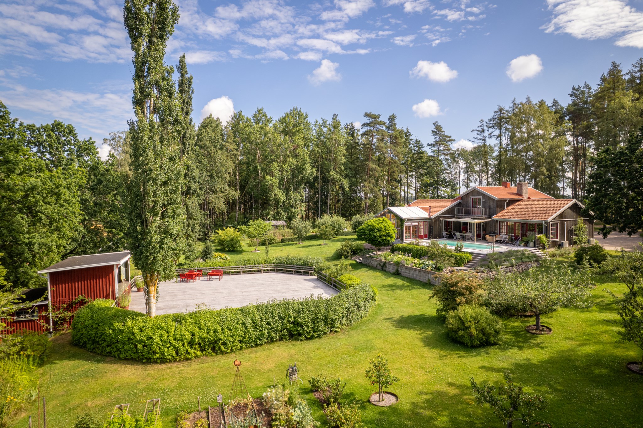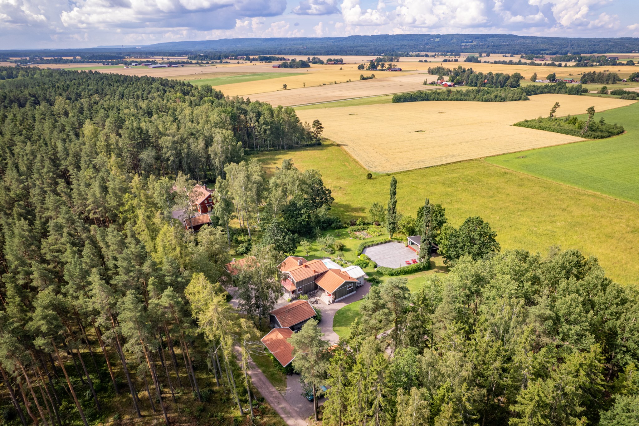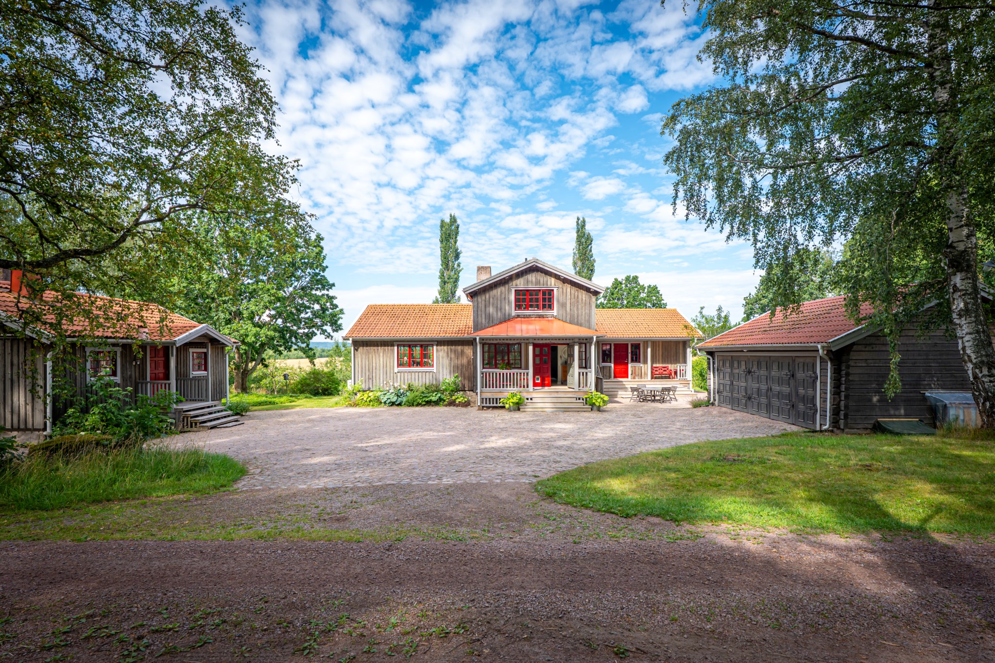 Drömmer du om ett lantligt boende med egen dansbana? Nu finns chansen! Smakfull byggnation, 2 bostadshus, flera garage o verkstadsförråd, växthus mm på den vackert belägna tomten med solnedgång över Billingen.