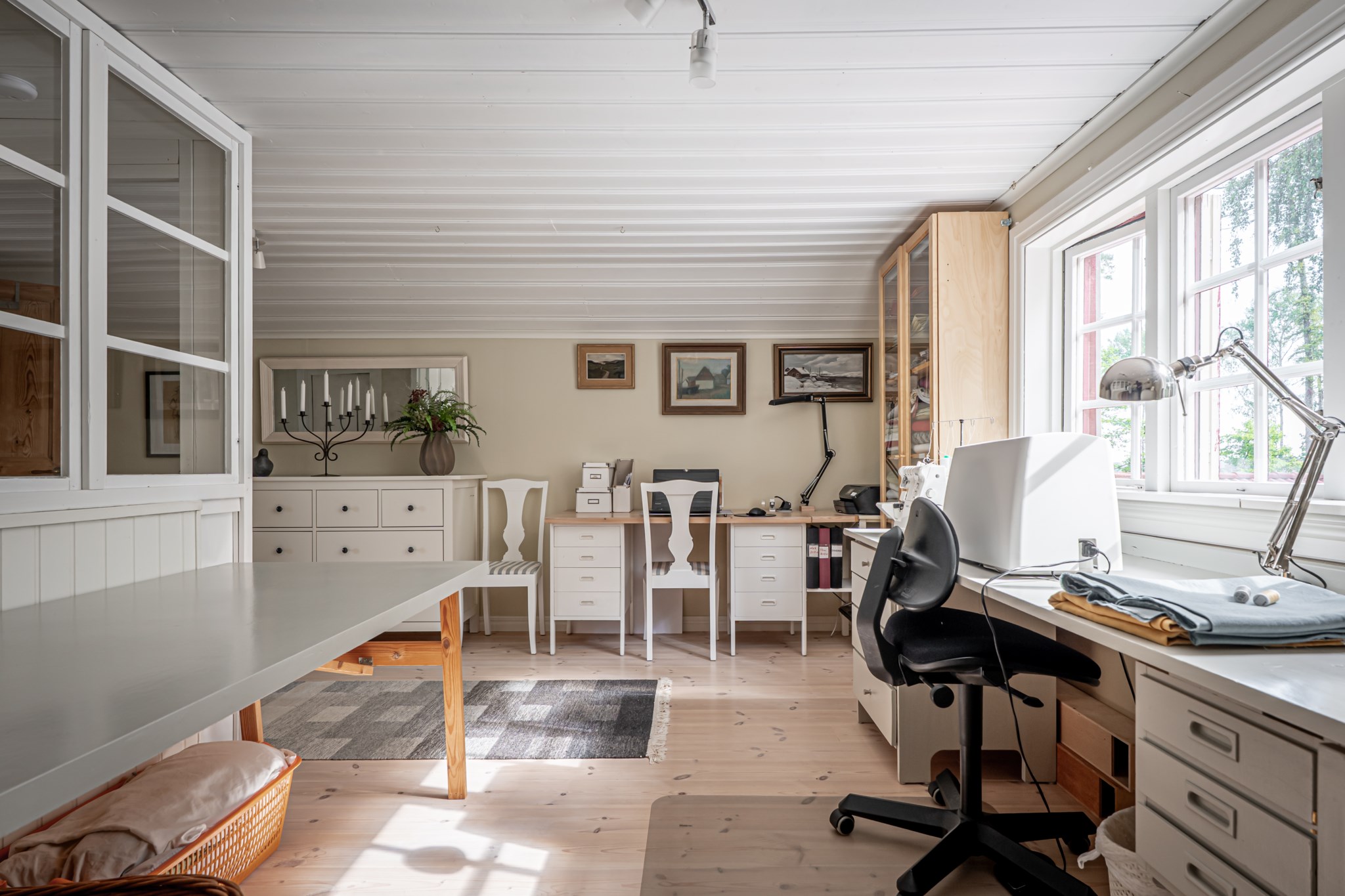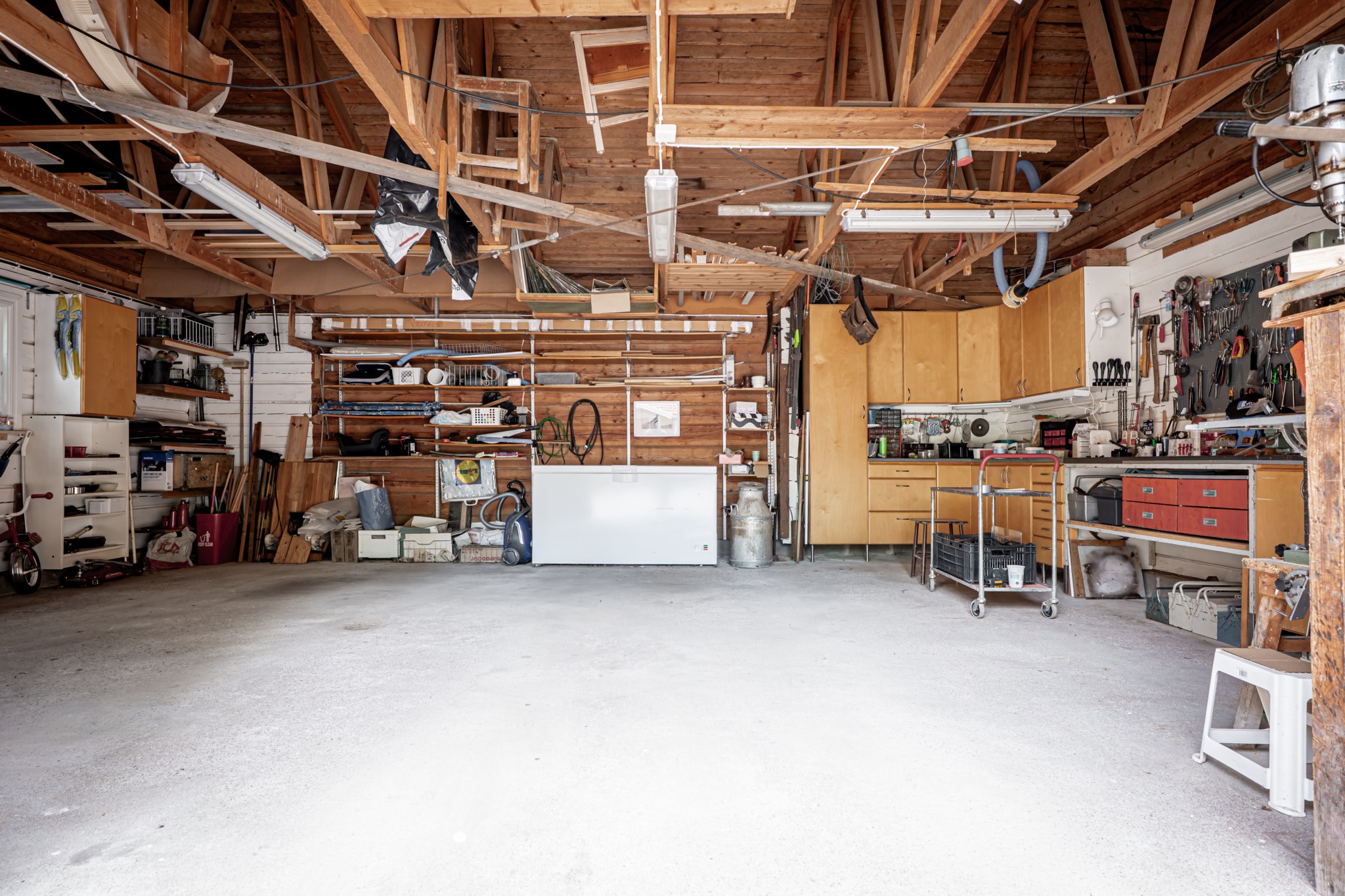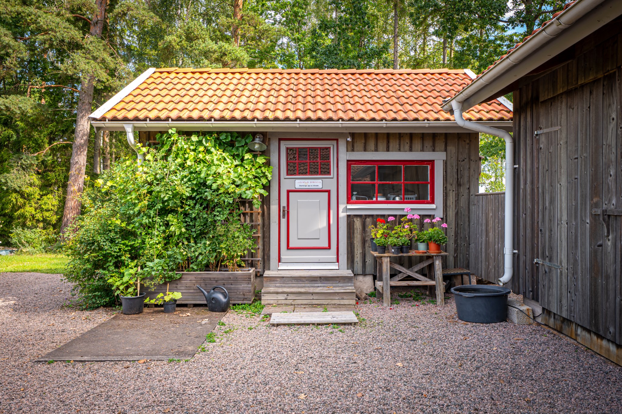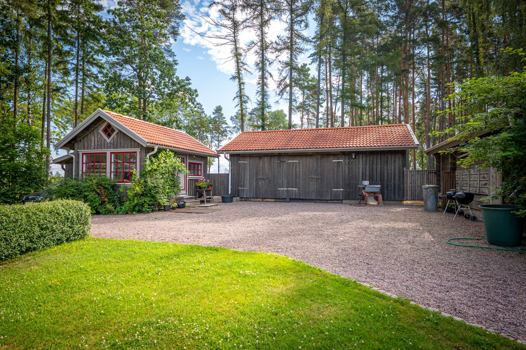 Bakom garaget ligger ett förråd / verkstad om ca 50 kvm även det ett kallutrymme samt ett litet gästhus/paviljong som används som biodlarhus ca 15 kvm.