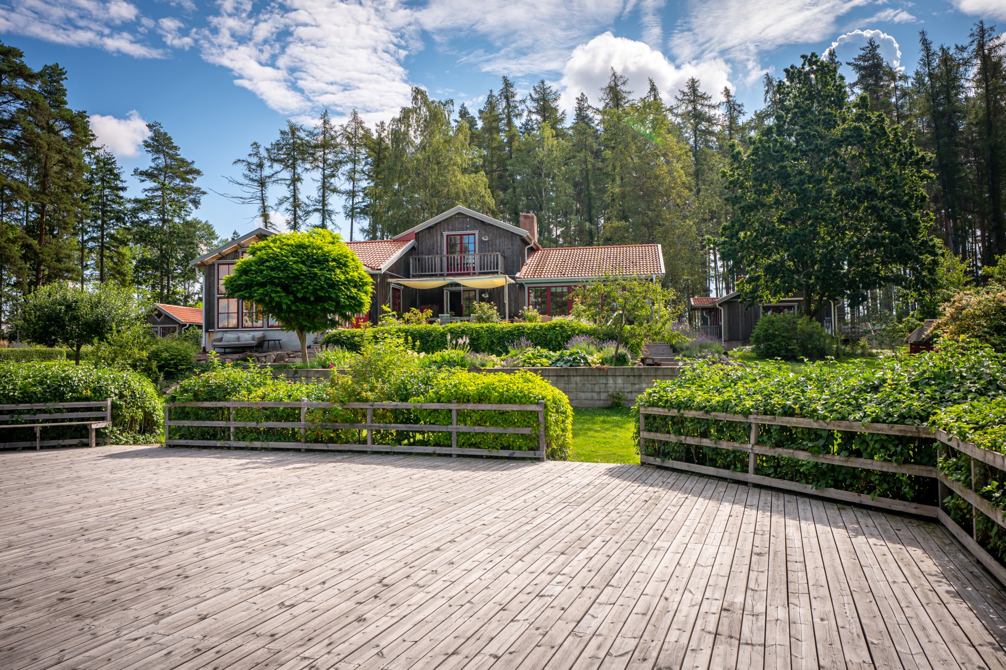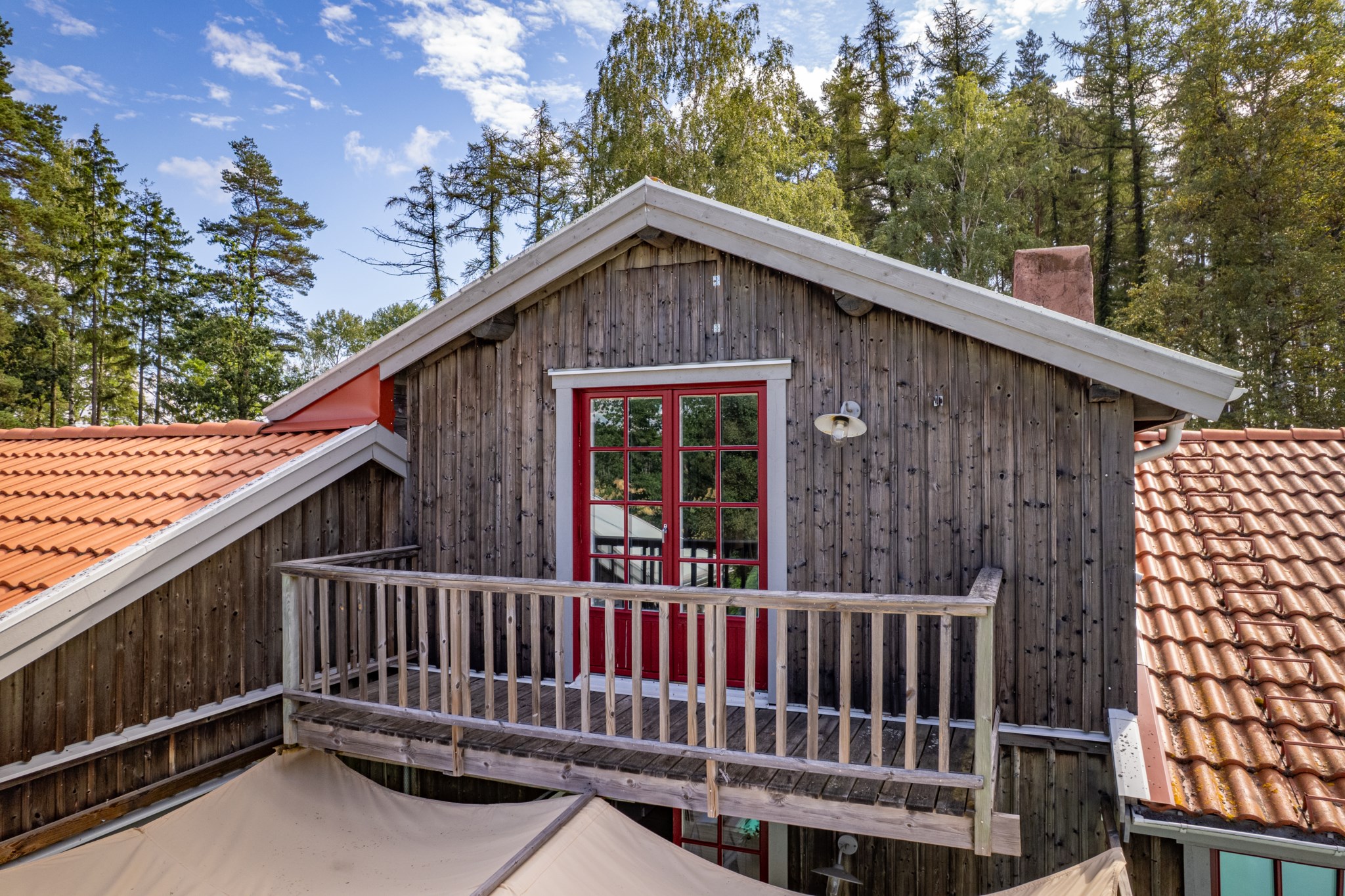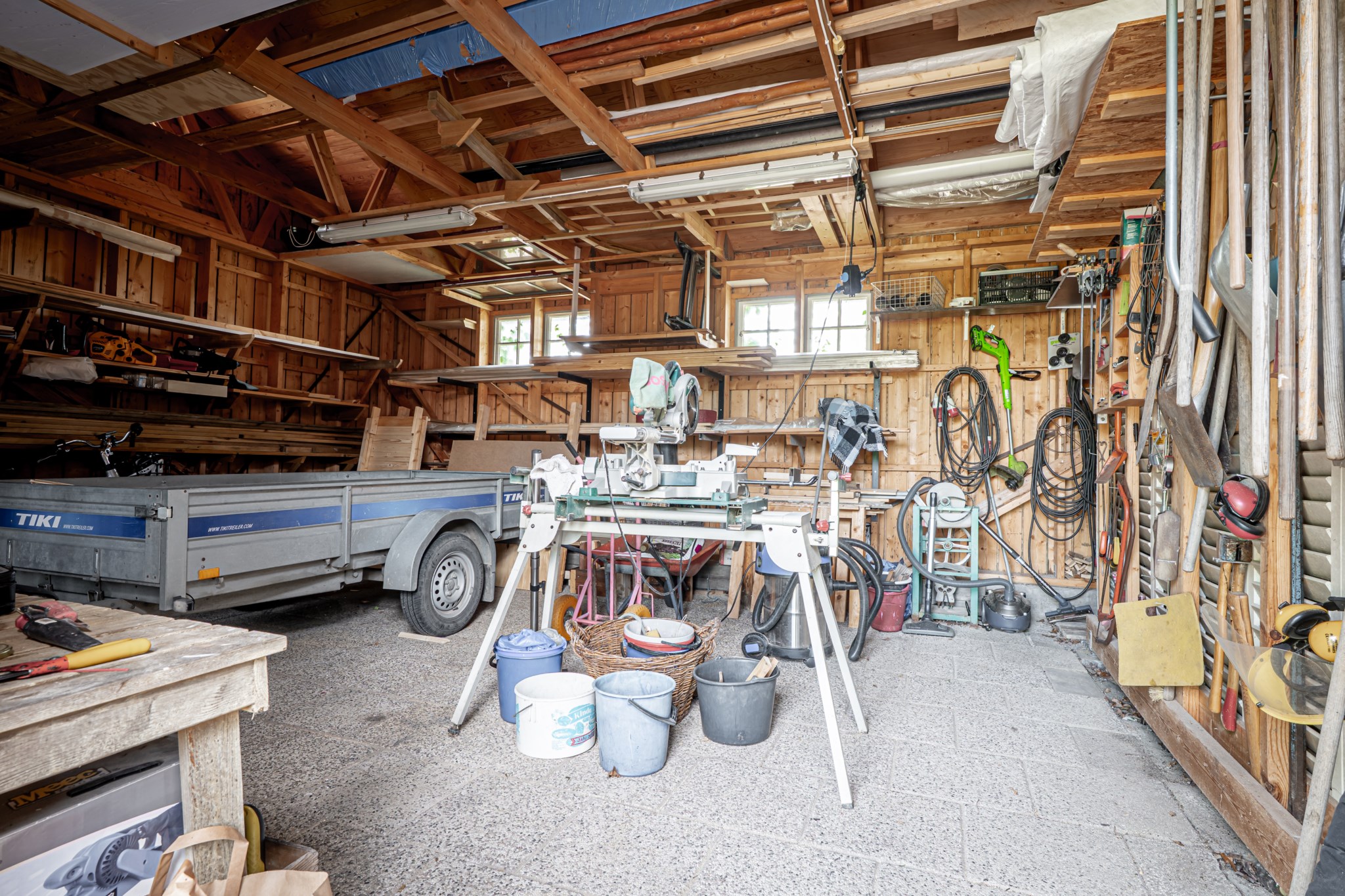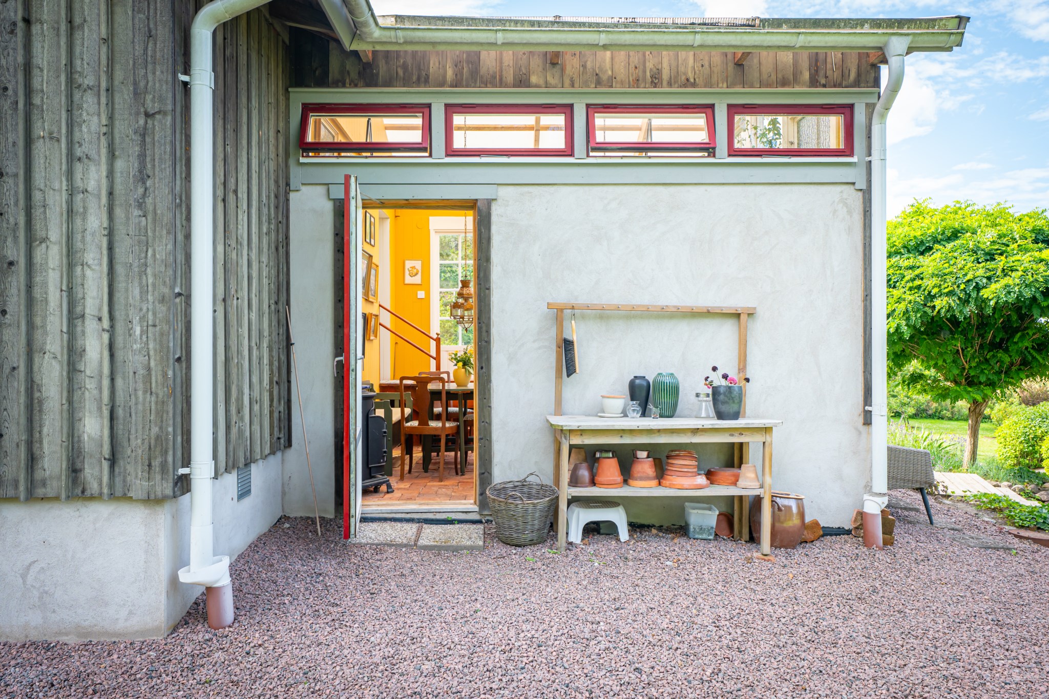 Bakom garaget ligger ett förråd / verkstad om ca 50 kvm även det ett kallutrymme samt ett litet gästhus/paviljong som används som biodlarhus ca 15 kvm.