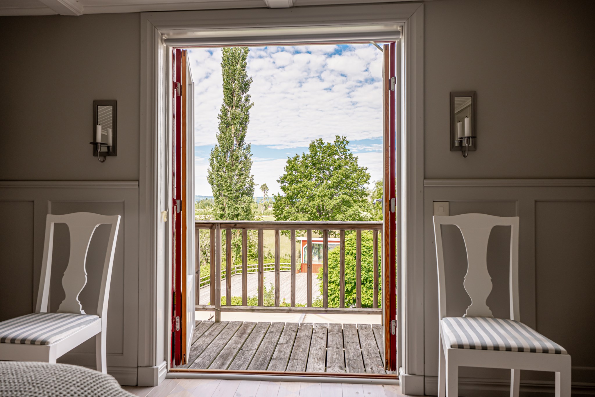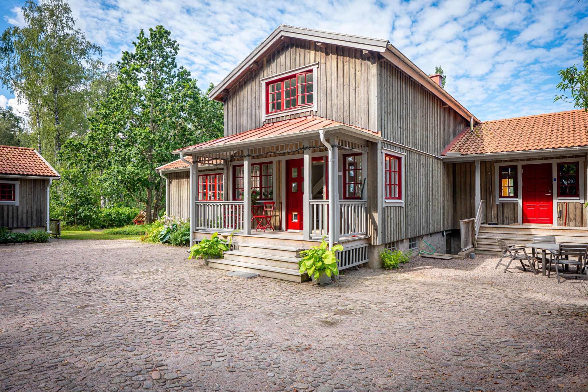 I en av flyglarna som omger den kullerstenslagda gårdsplanen ligger ett gästhus i samma stil som huvudbyggnaden som är ca 45 kvm och med källare. Här finns såväl kök som badrum och alla bekvämligheter som behövs för uthyrning alt gäster.
