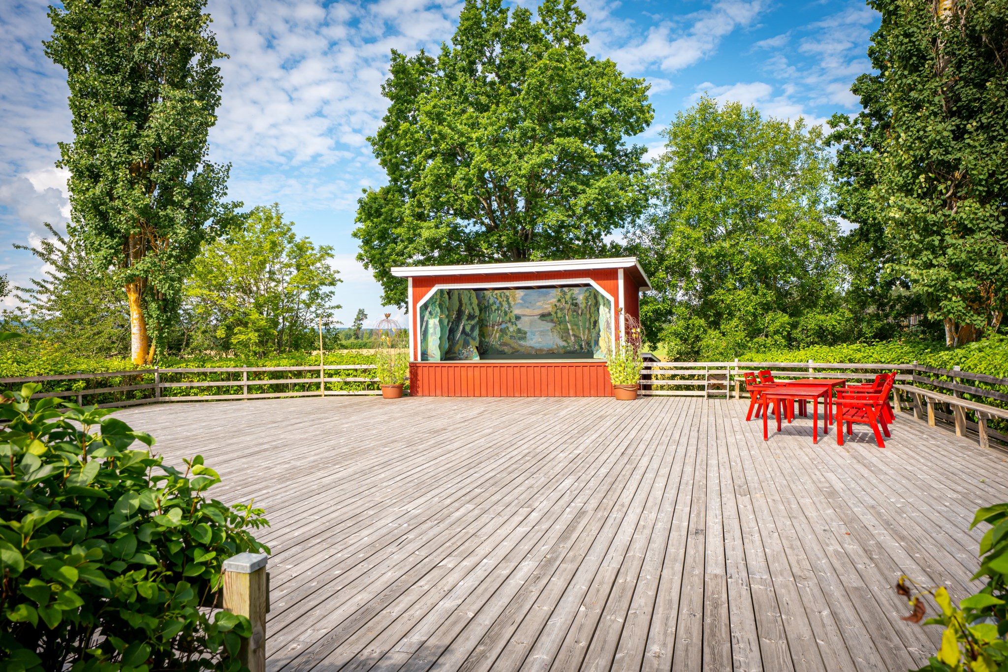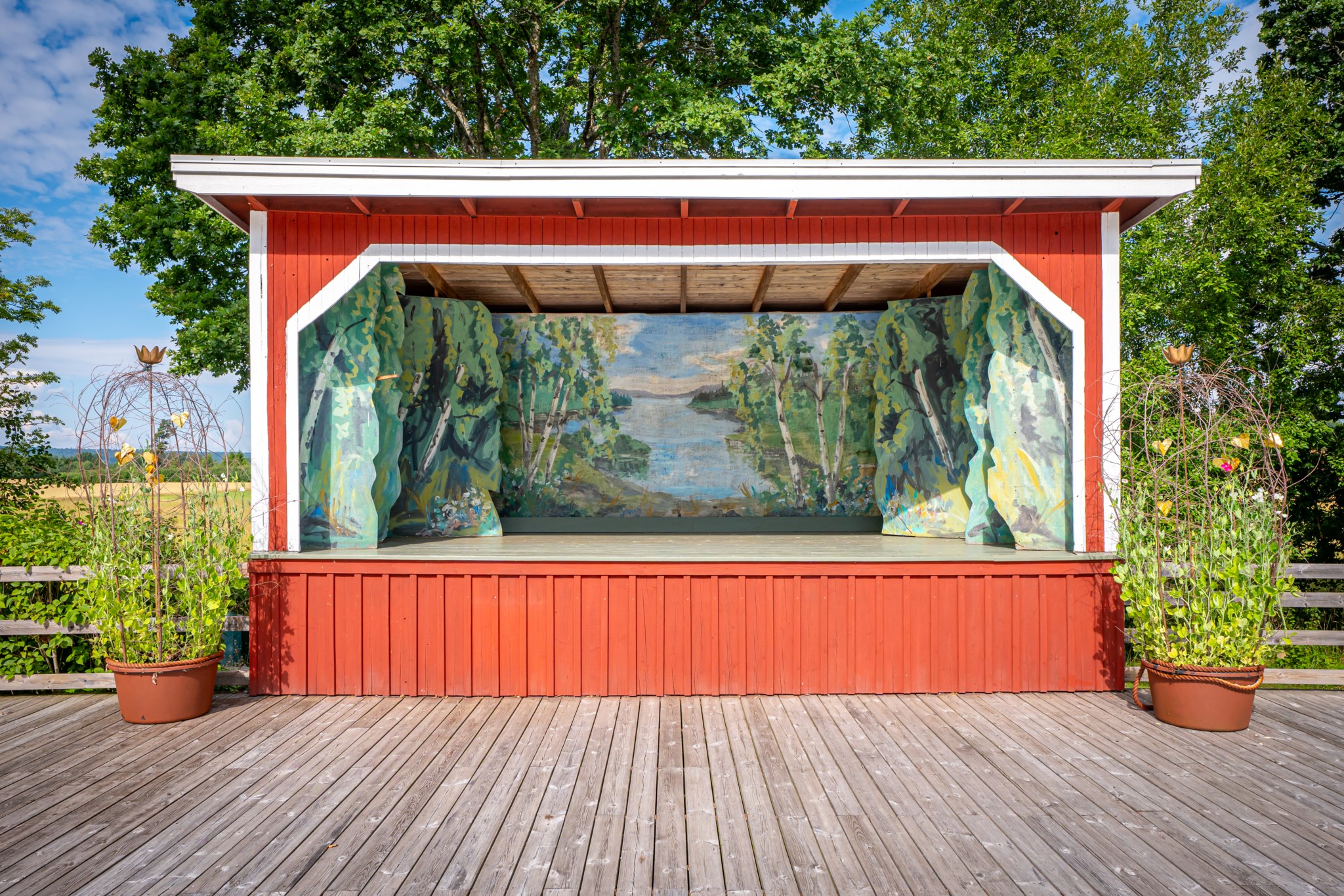 Den stora dansbanan ligger nere i trädgården och har en scen under tak med handmålade kulisser. Här har även hållits utomhusföreställningar och inte bara dansats.