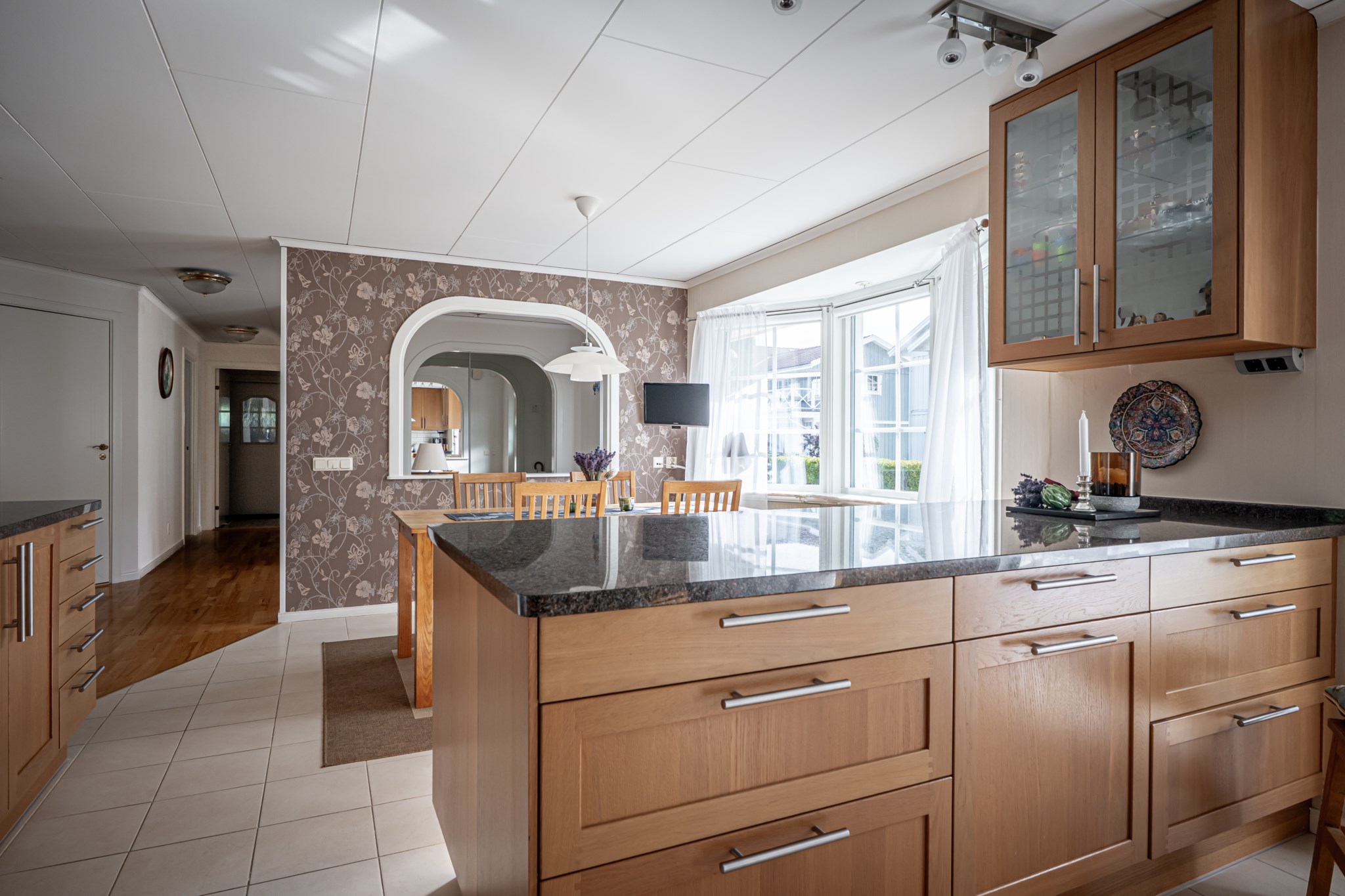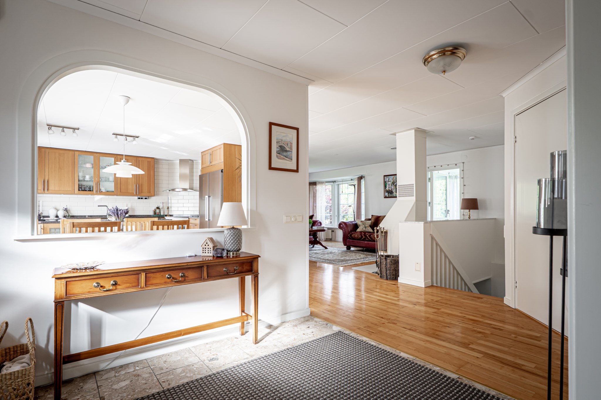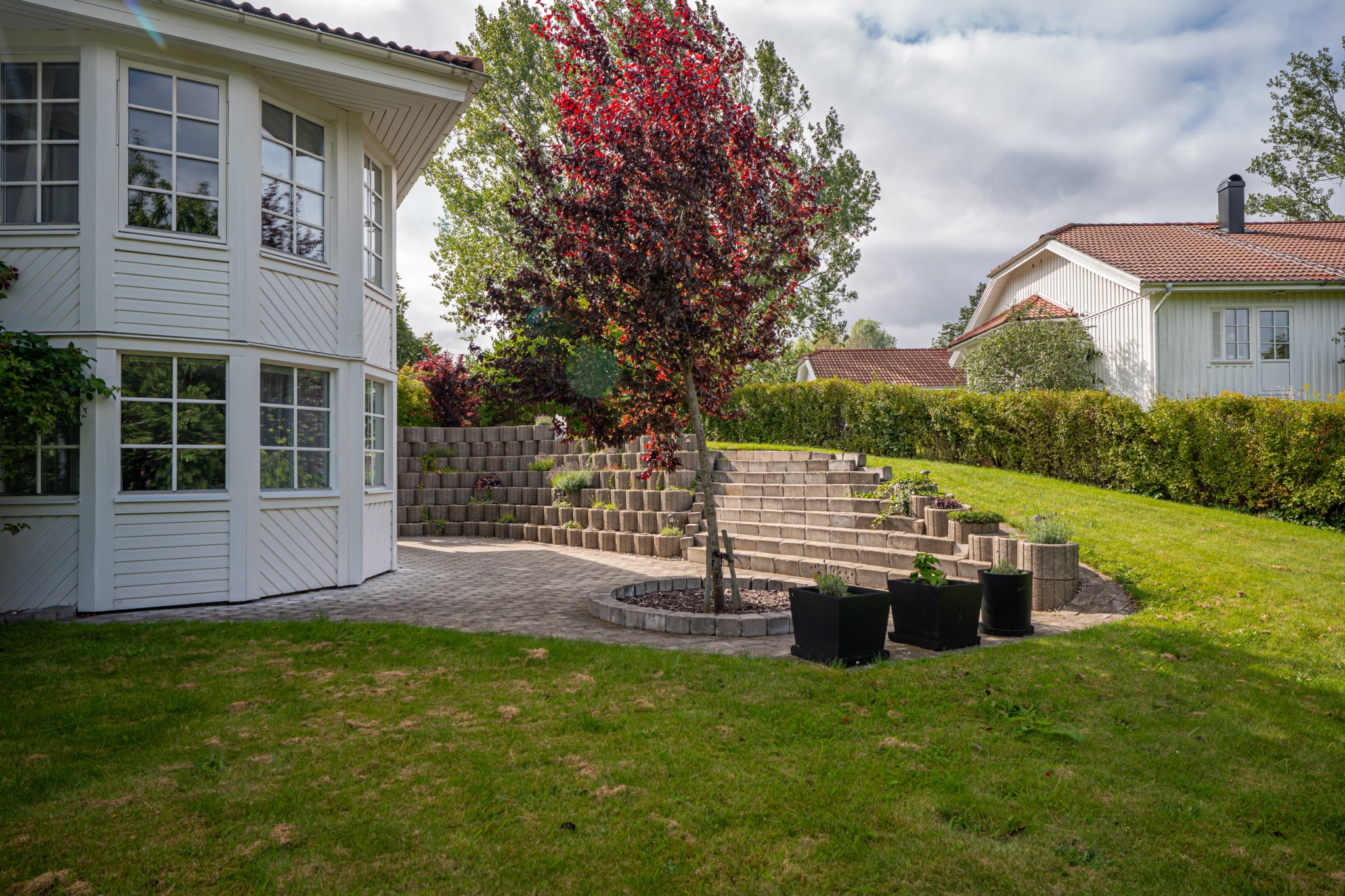 En mycket välskött sluttningsvilla från Sjödalshus med stora generösa ytor och möjlighet till ända upp till 5 rymliga sovrum. Tomten har ett fint läge med stor integritet på baksidan mot park/grönområdet. Lättskött tomt med mycket stensättningar och murar.