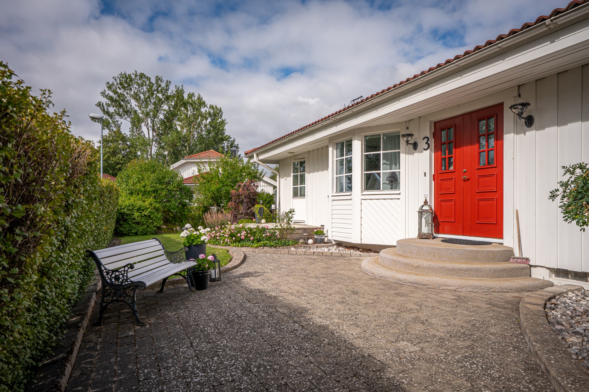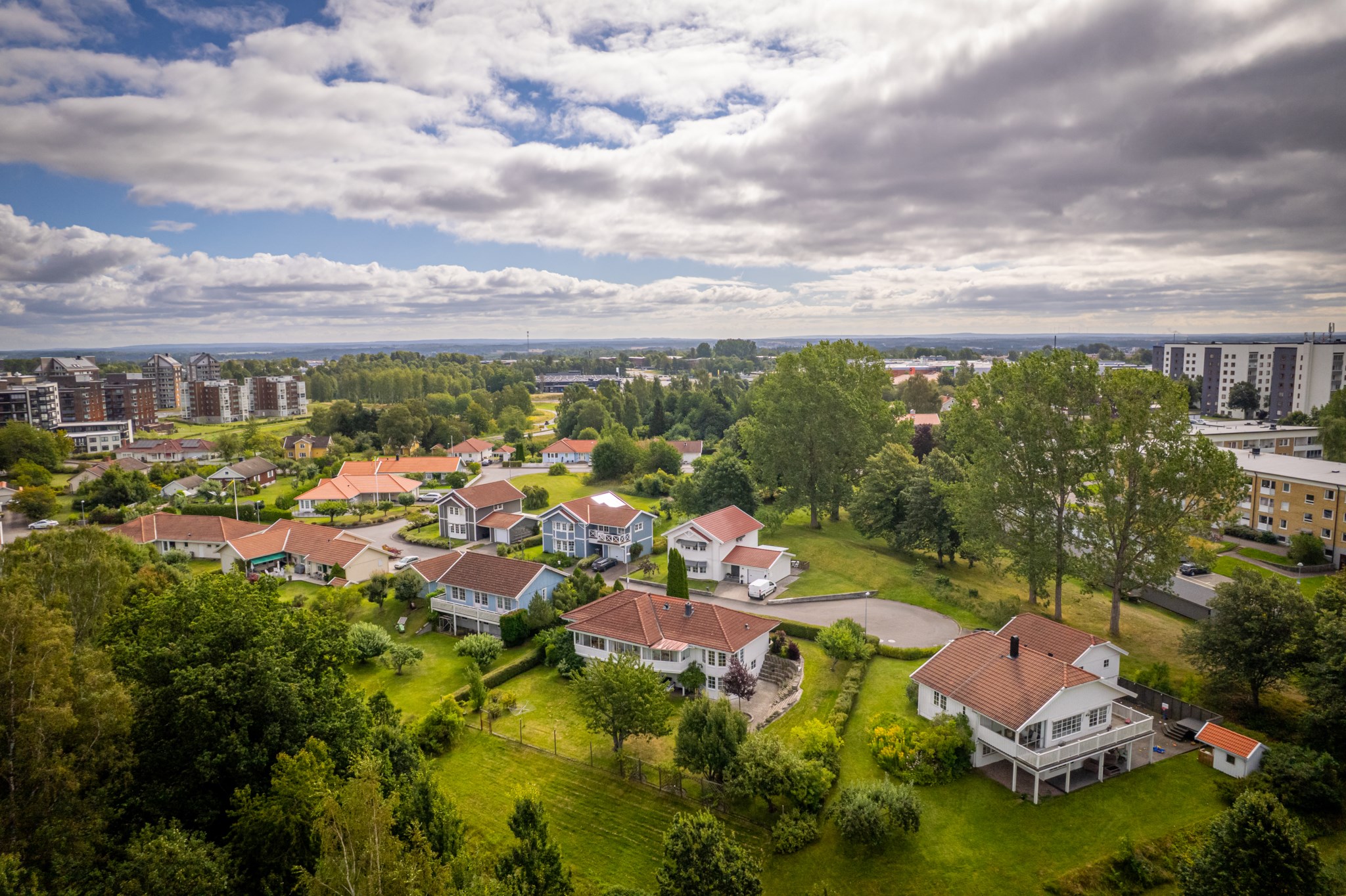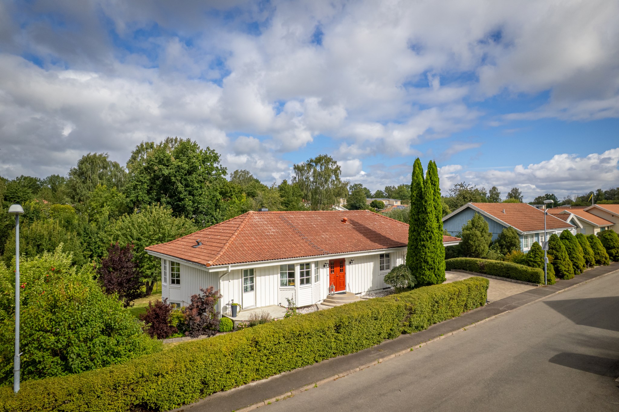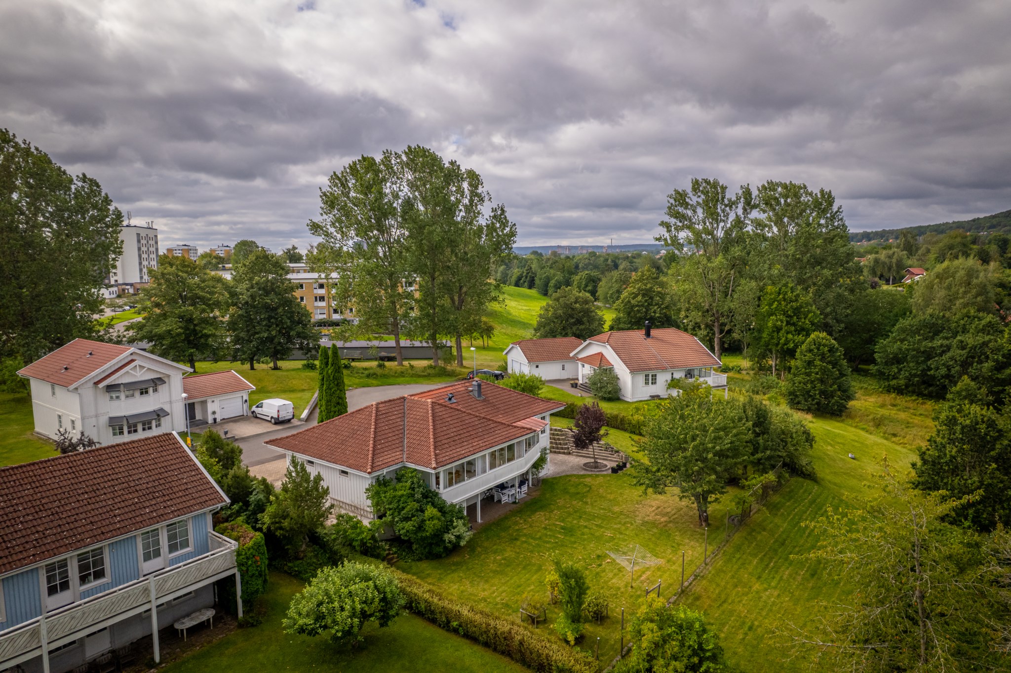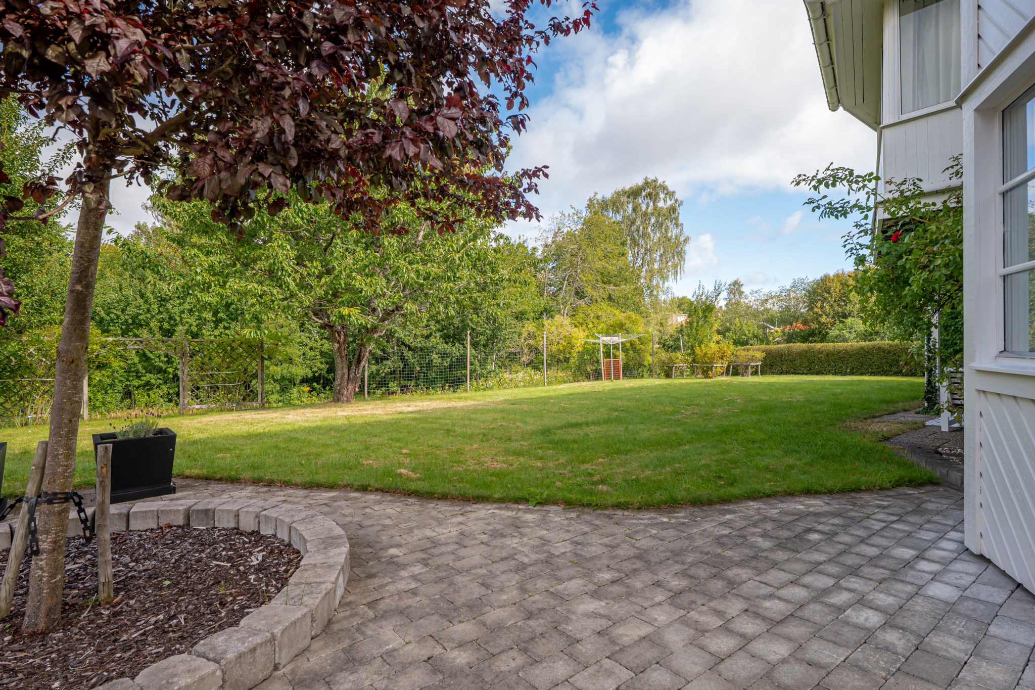 Med ett lugnt läge på återvändsgata ligger denna mycket välskötta sluttningsvilla från 1991. Generösa ytor såväl inne som på den välplanerade tomten som genom sitt fina läge mot grönområde och rätt väderstreck ger fin sol hela dagen samt kvällen. I närområdet finns såväl förskola som skola och fina sportanläggningar mm.