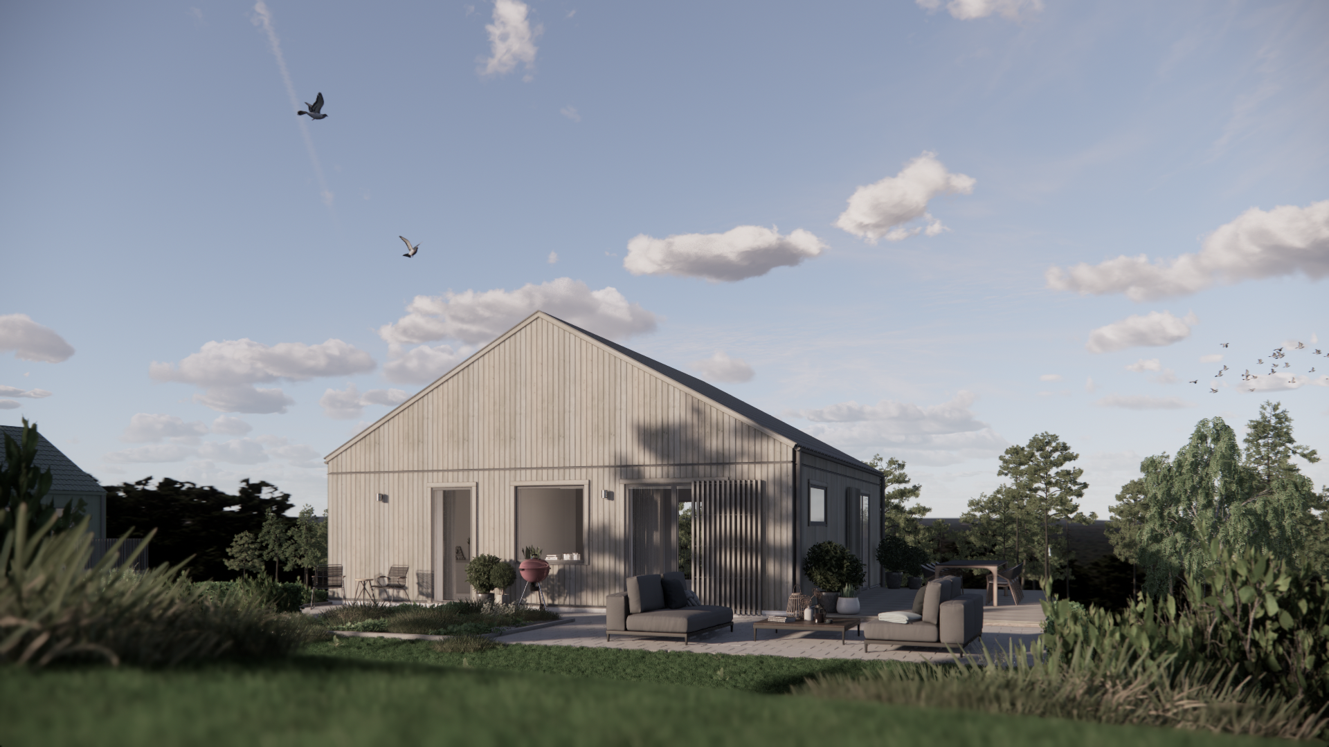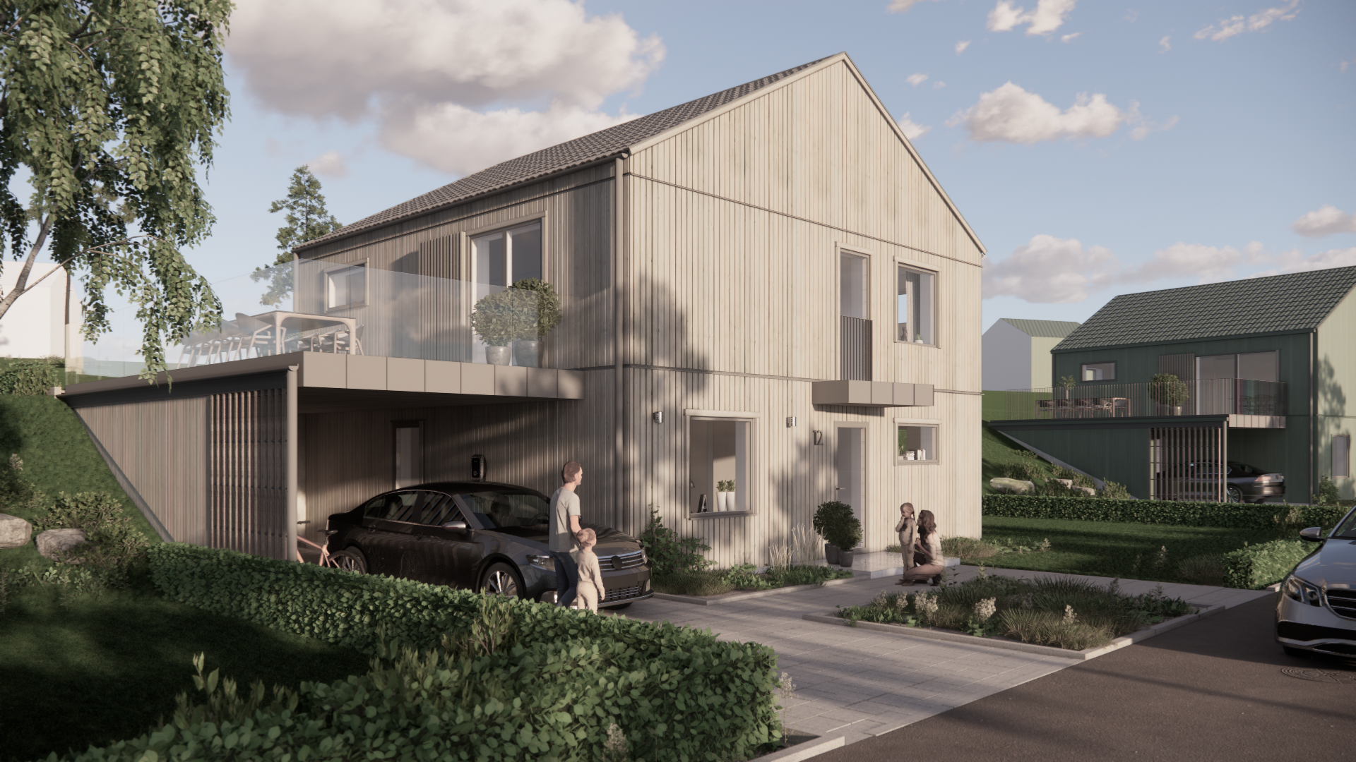 Huset är en kombination av tradition och moderna lösningar med bl.a. klassisk träpanel varvat med fönstersättning och detaljer anpassat för nutidens krav på energieffektivitet och kvalité. Byggt som souterainhus om 150 kvm med entré i souterainplan och vidbyggd carport och förråd med ovanliggande terass. Byggnaden håller bra standard från början men går också att anpassa efter dina önskemål inklusive färgsättning på fasad m.m. (Observera - Bilderna som är framtagna är illustrationer och slutresultatet kan avvika från dessa).