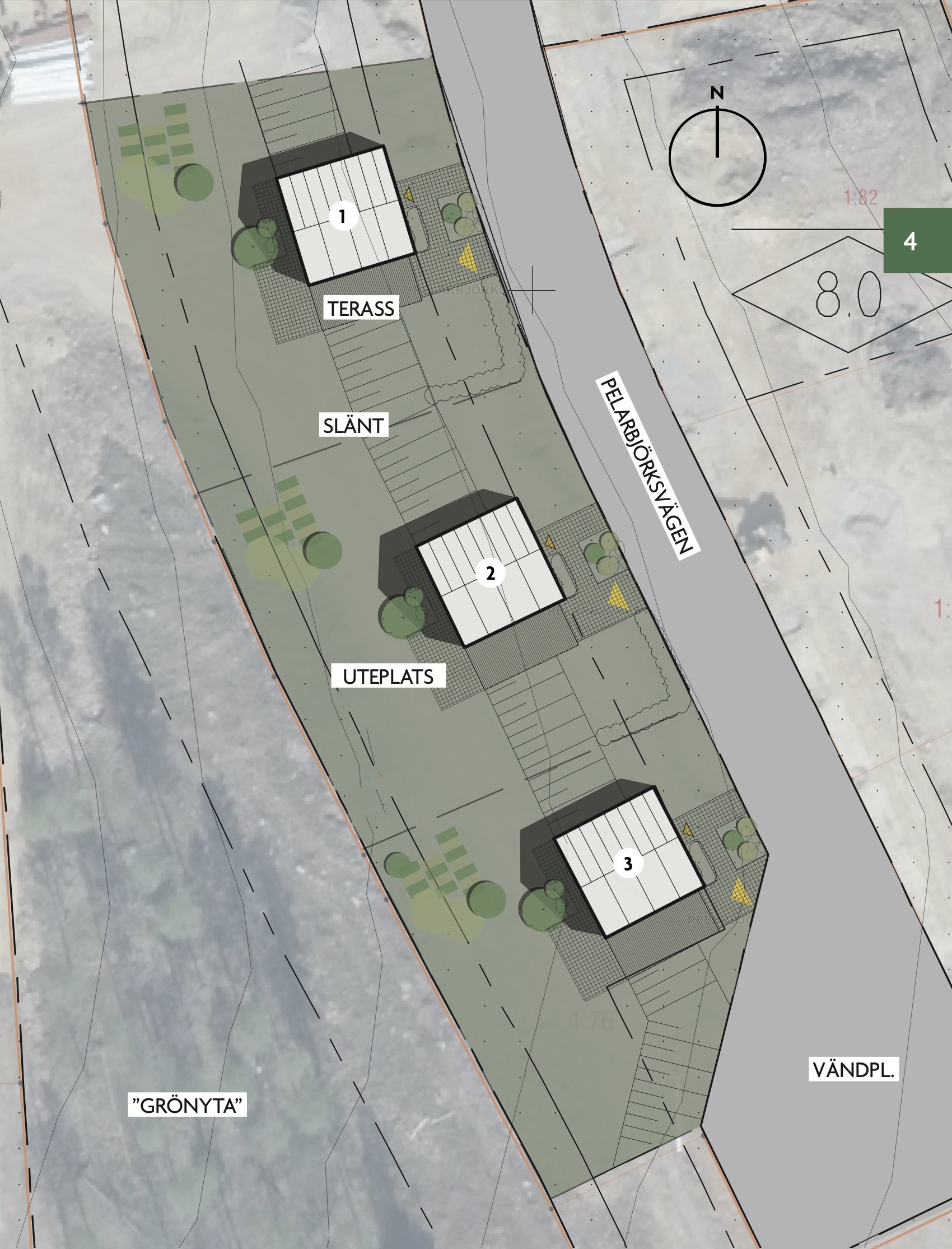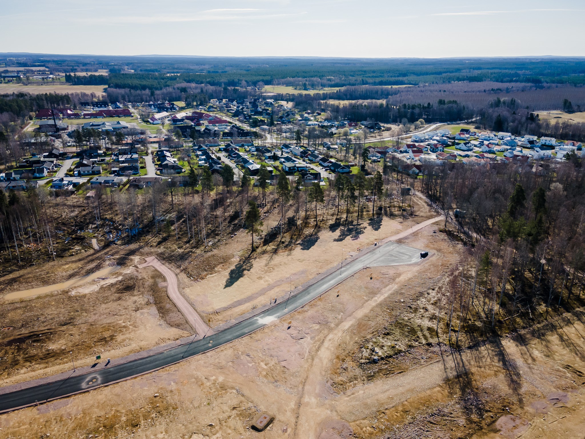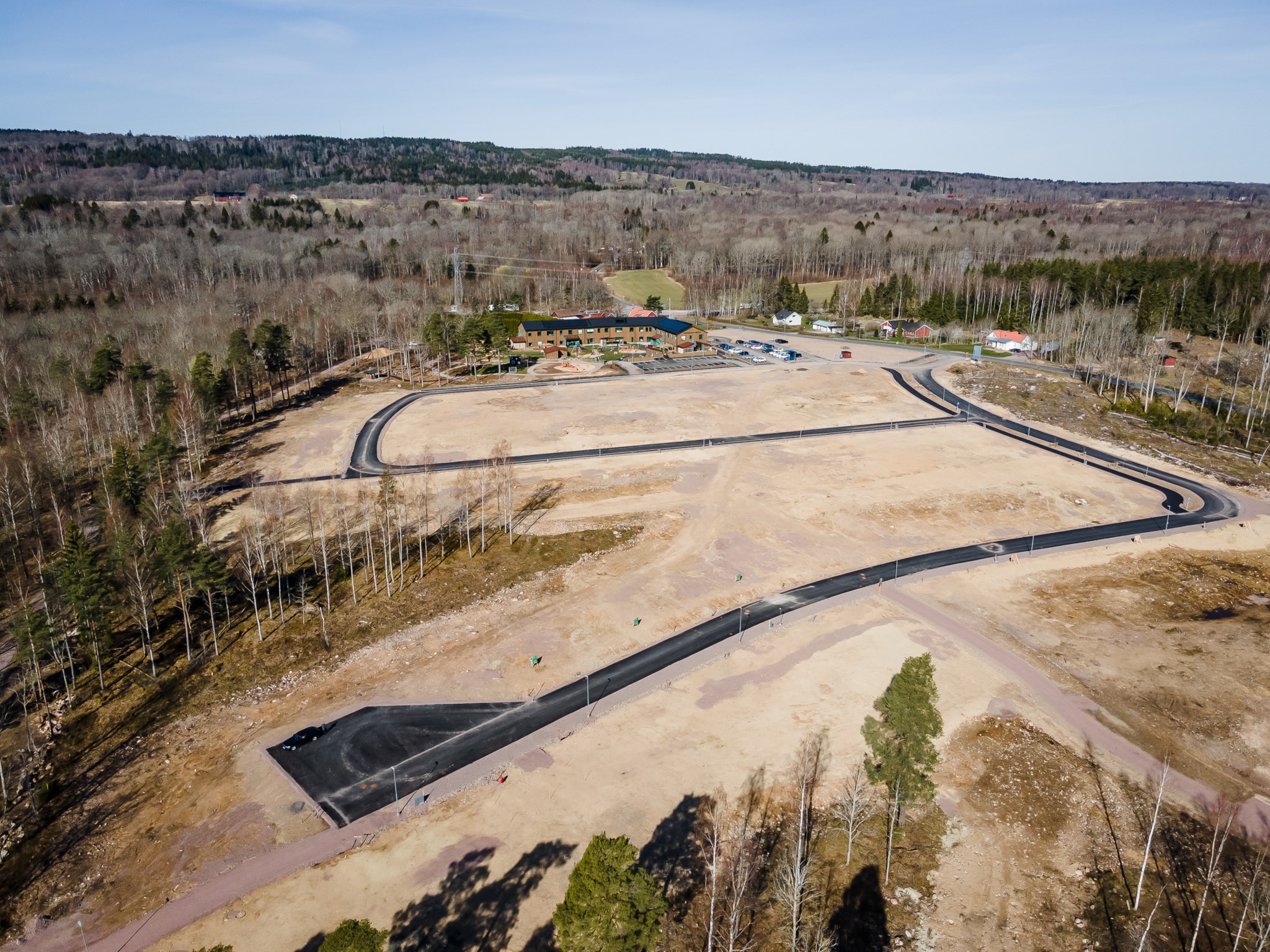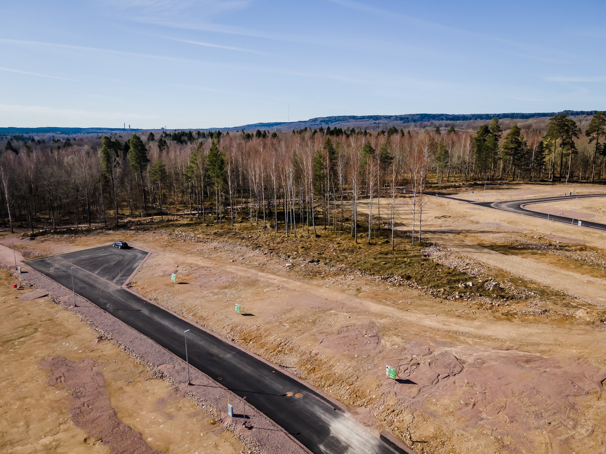 Tomt om 833 kvm som gränsar till grönområde. Parkering finns på framsidan som dessutom kompletteras av carport med ovanliggande terass i soligt sydvästläge.