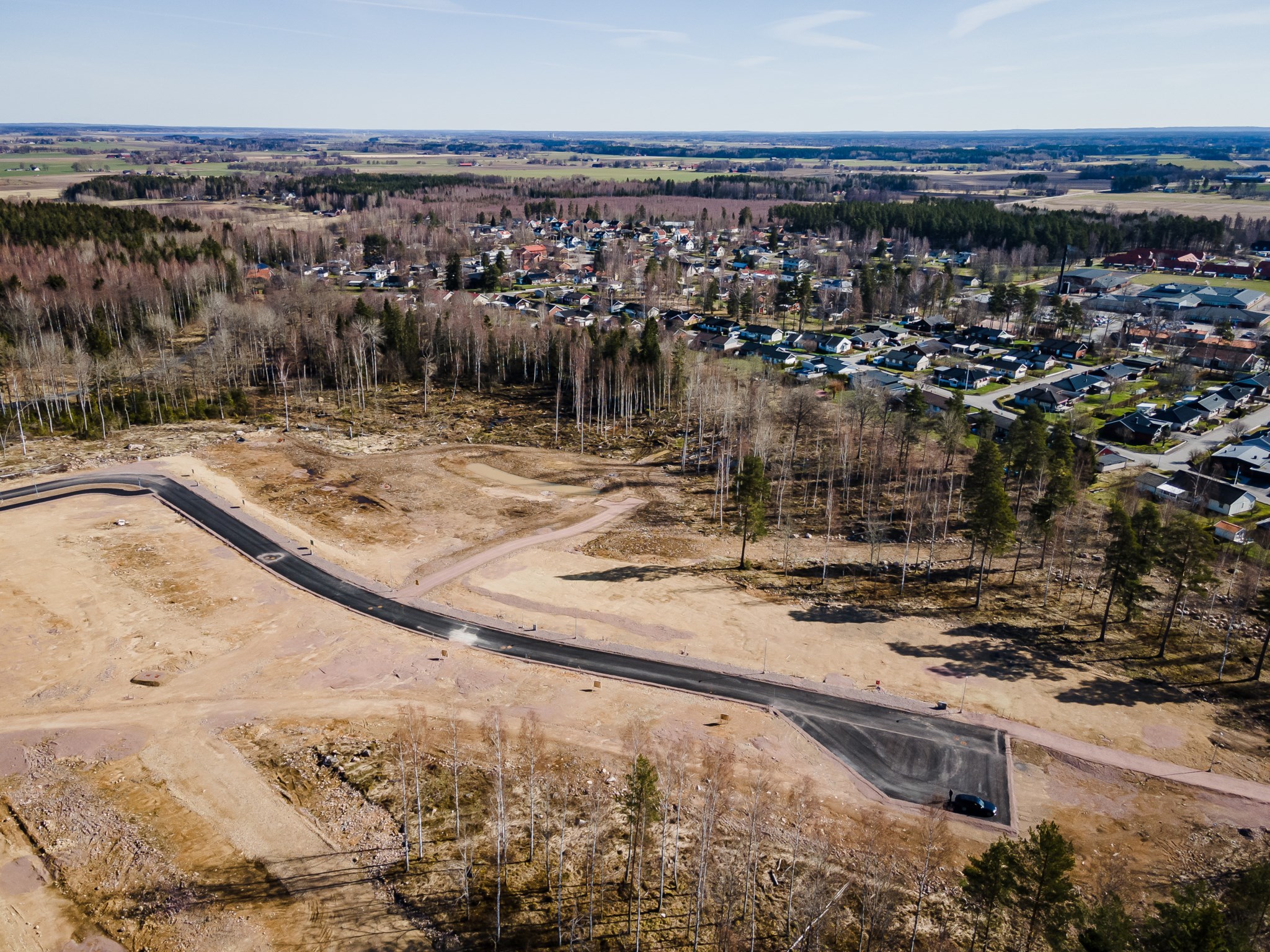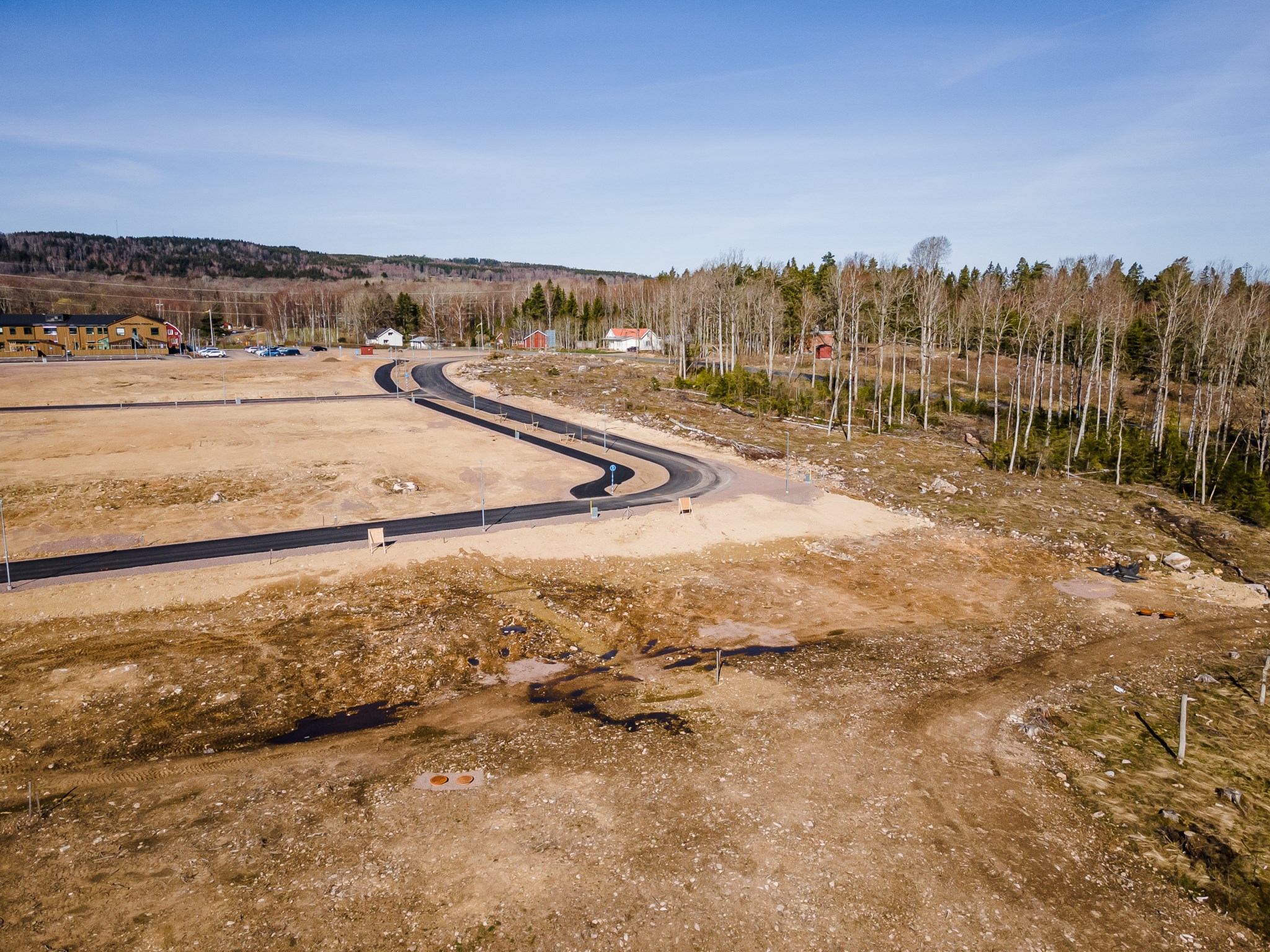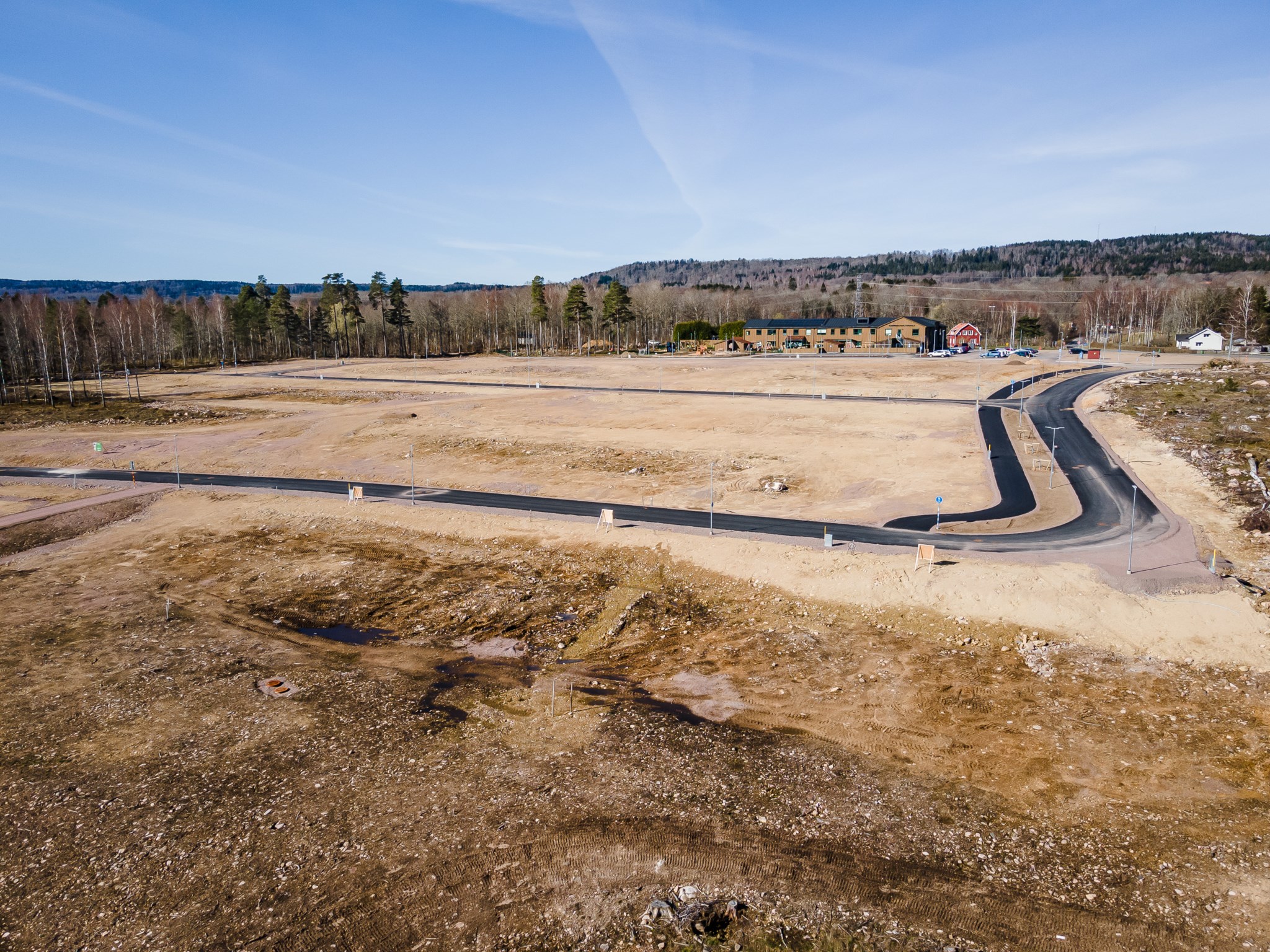 Tomt om 1.149 kvm som gränsar till grönområde. Huset ligger i sluttning med tomt som planar ut och ger en baksida som funkar bra till lek och odling. Plats för parkering finns på framsidan och på gaveln av huset byggs en fin terass i soligt sydvästläge. Denna kompletteras dessutom av en balkong ut mot baksidans trädgård.