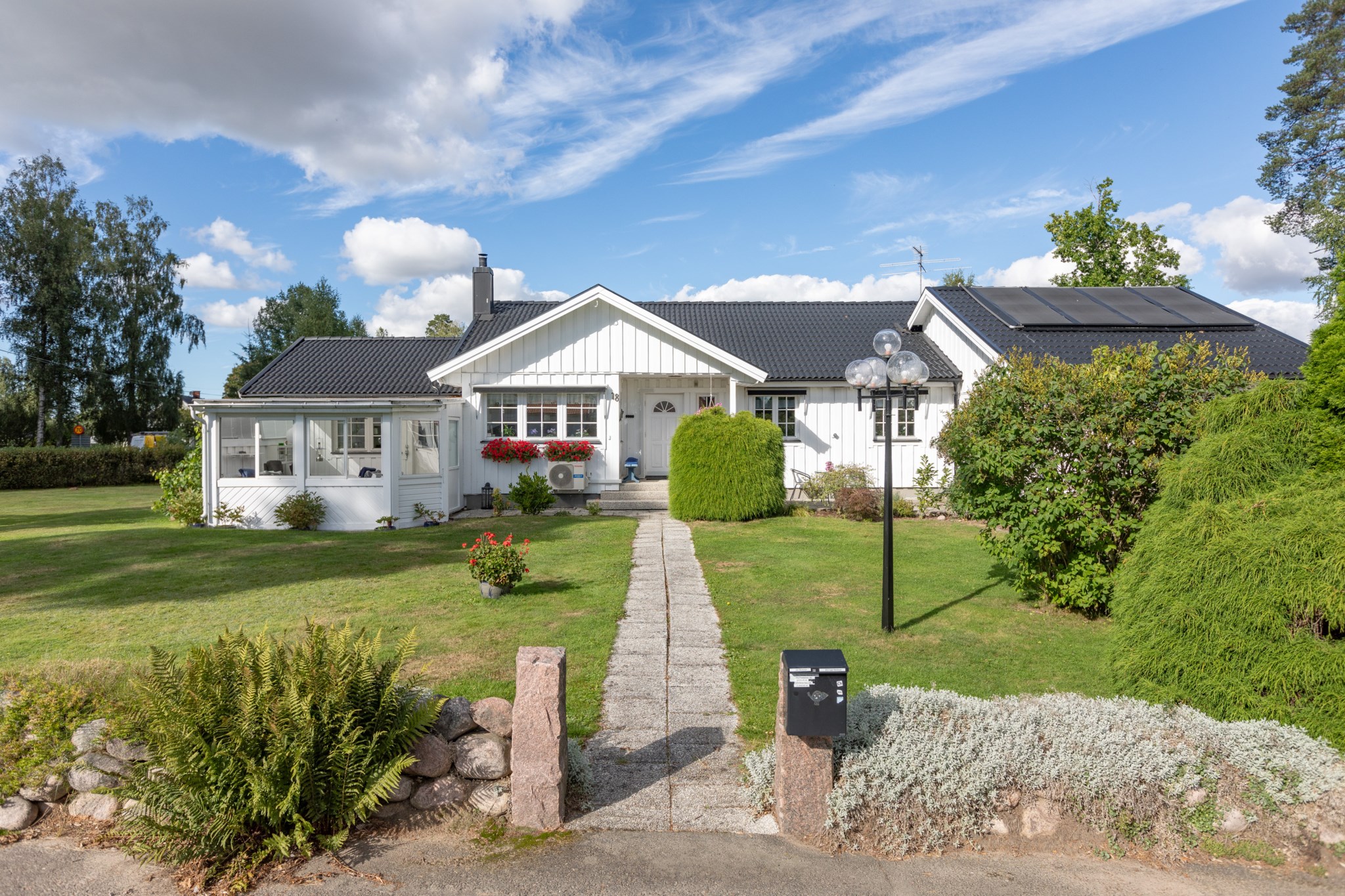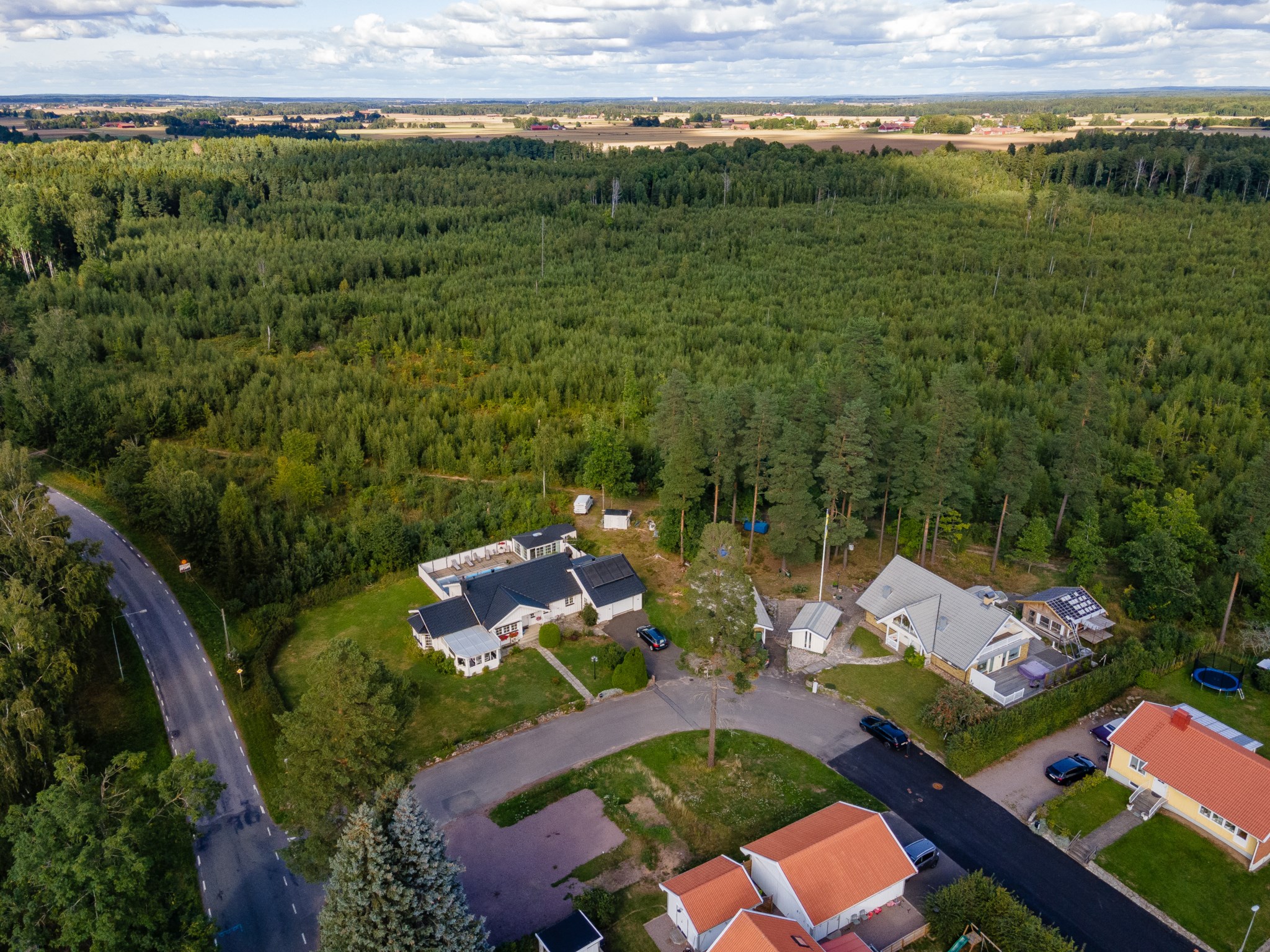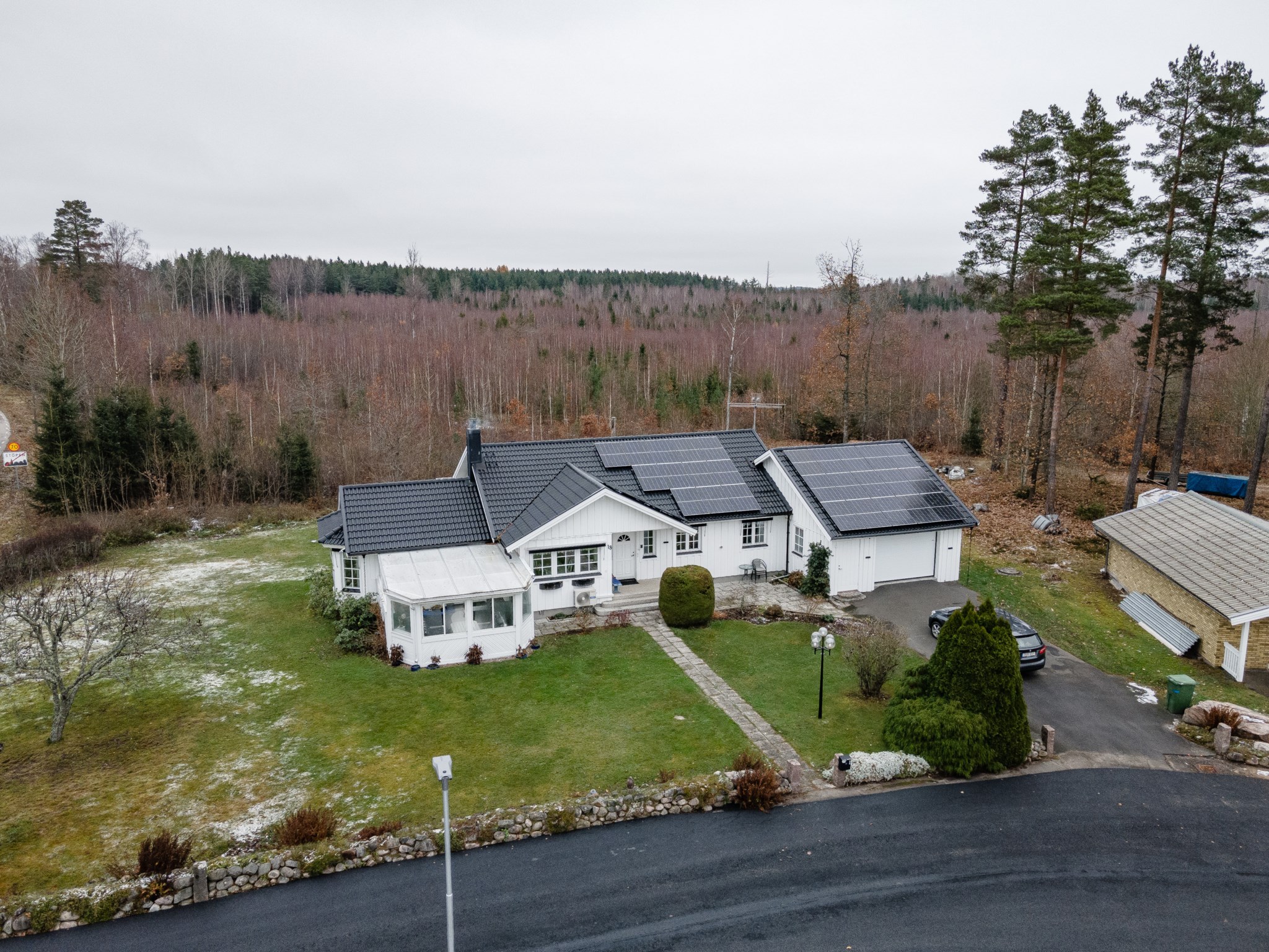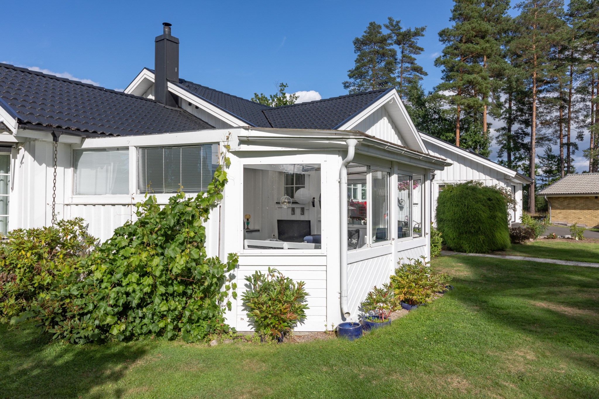 Anebyhus ifrån 1982 i ett plan som under åren förvaltats väl och byggts till med uterum mot framsidan och även kompletterats med en inramad baksida med pool och poolhus som skapar en liten oas på baksidan. Lummigt läge med baksida som vetter ut mot natur och skog. Nyligen installerad solcellsanläggning om 12 kwh som ger en förbättrad driftsekonomi.