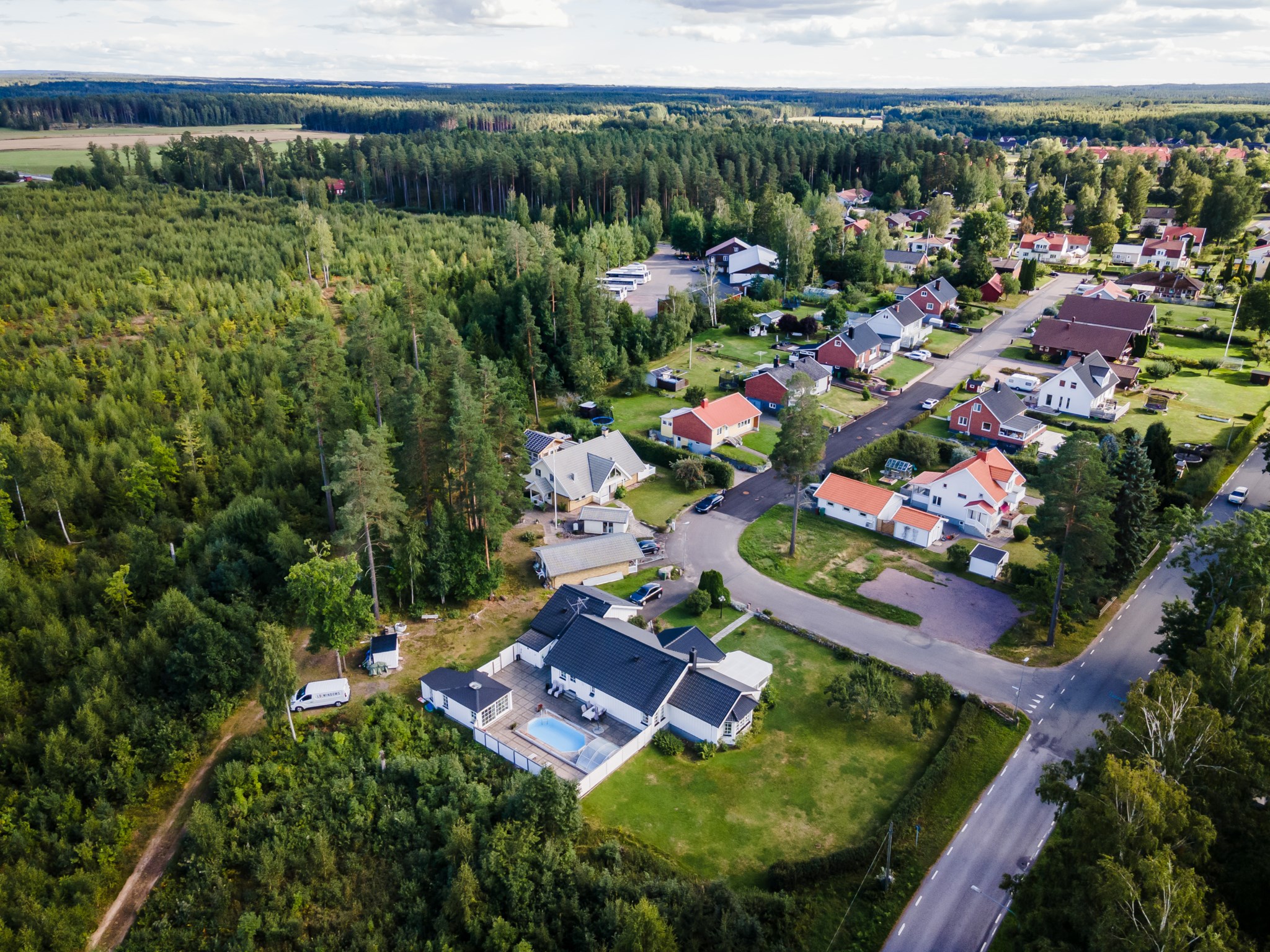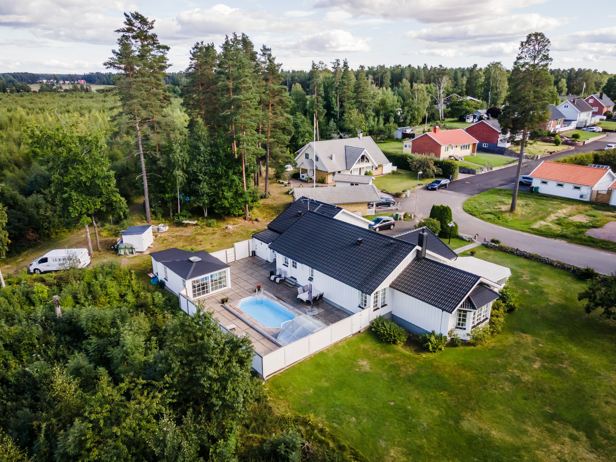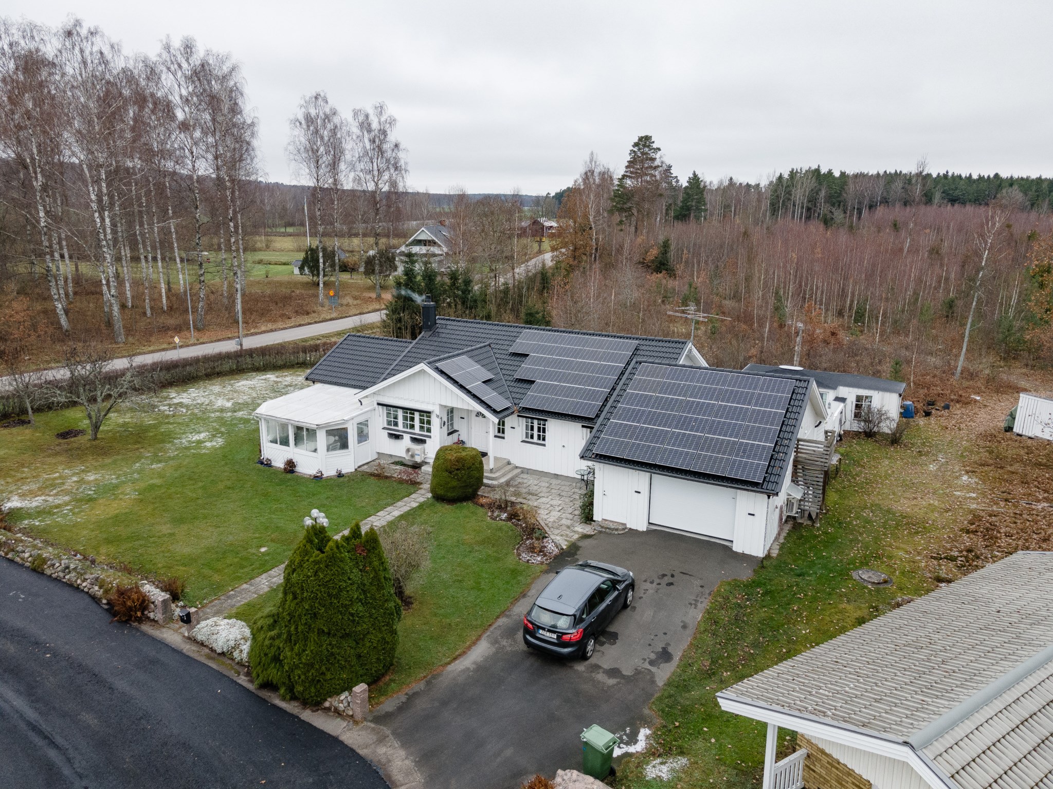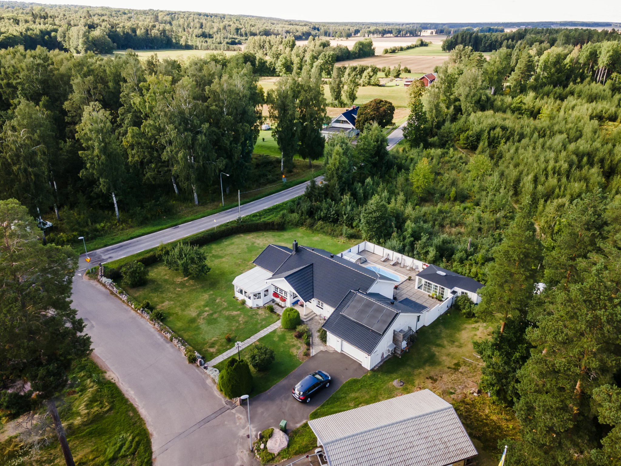 Anebyhus ifrån 1982 i ett plan som under åren förvaltats väl och byggts till med uterum mot framsidan och även kompletterats med en inramad baksida med pool och poolhus som skapar en liten oas på baksidan. Lummigt läge med baksida som vetter ut mot natur och skog. Nyligen installerad solcellsanläggning om 12 kwh som ger en förbättrad driftsekonomi.