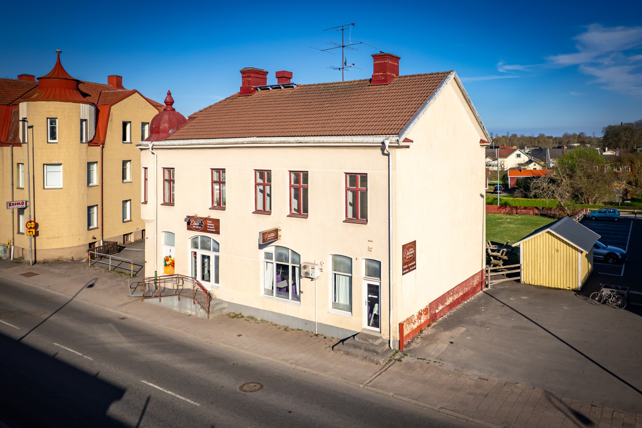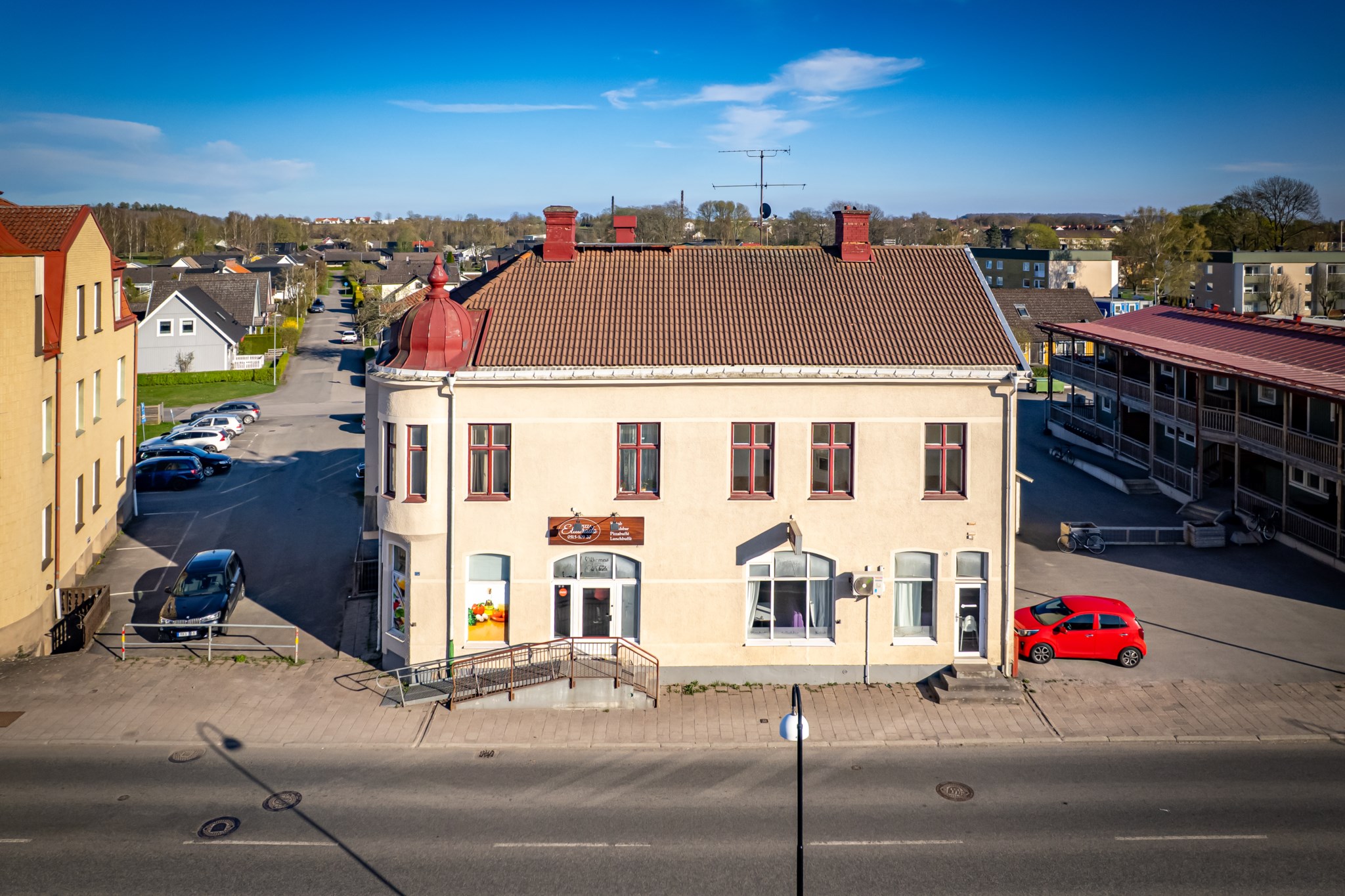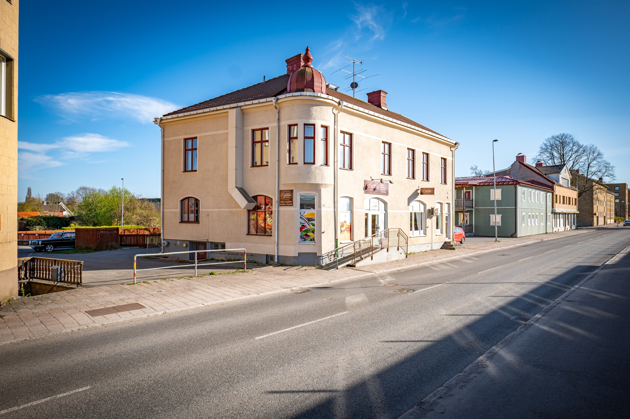 Nu kan vi erbjuda ett mindre hyreshus om tre lägenheter och en lokal som i dagsläget huserar pizzeria på Järnvägsgatan i Falköping. Lägenheterna håller en god bruksstandard. Stor tomt med potential för ytterligare byggmöjlighet för den visionäre.