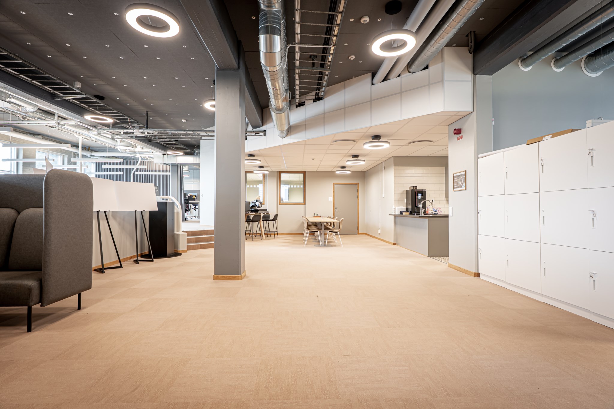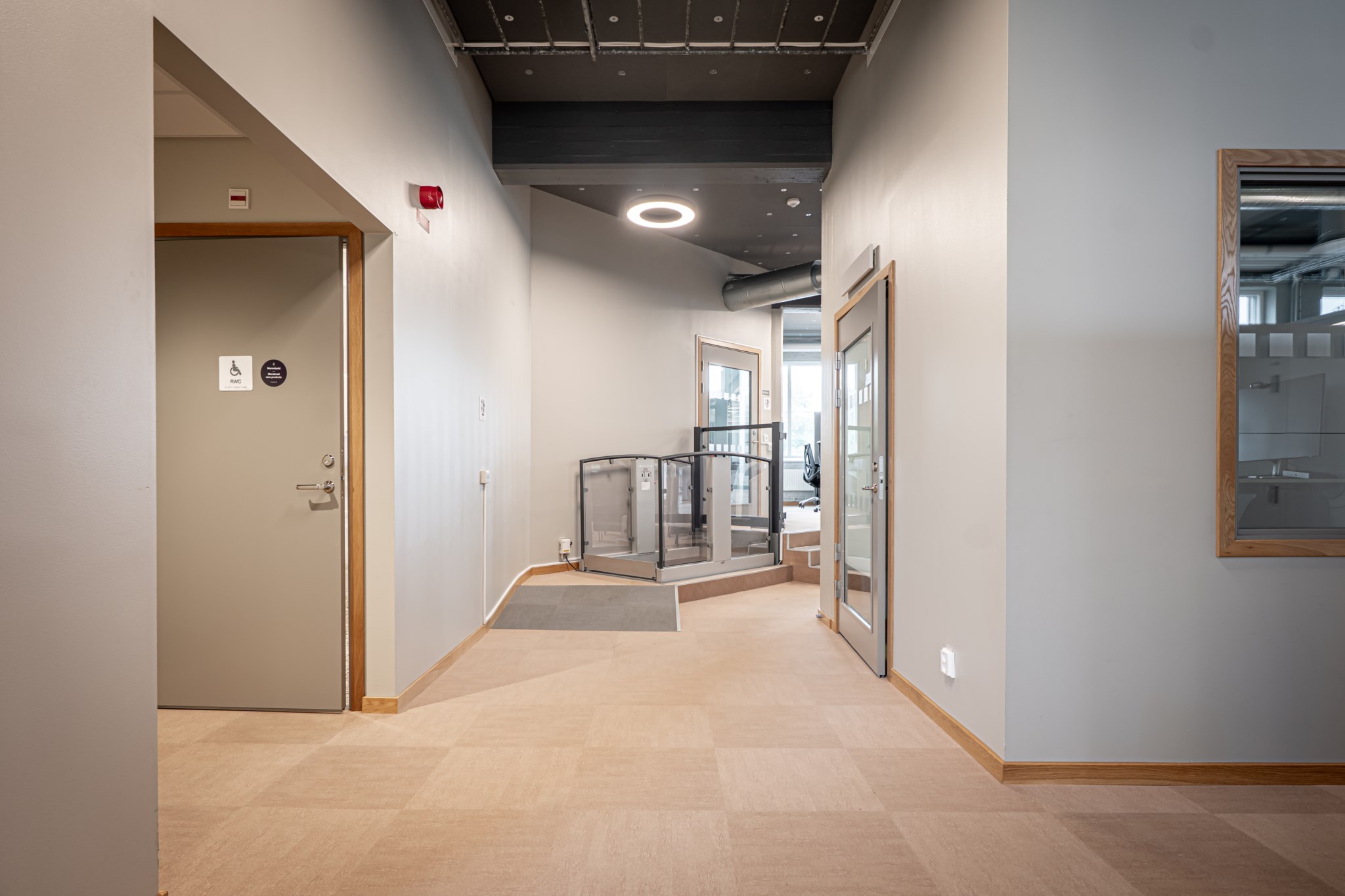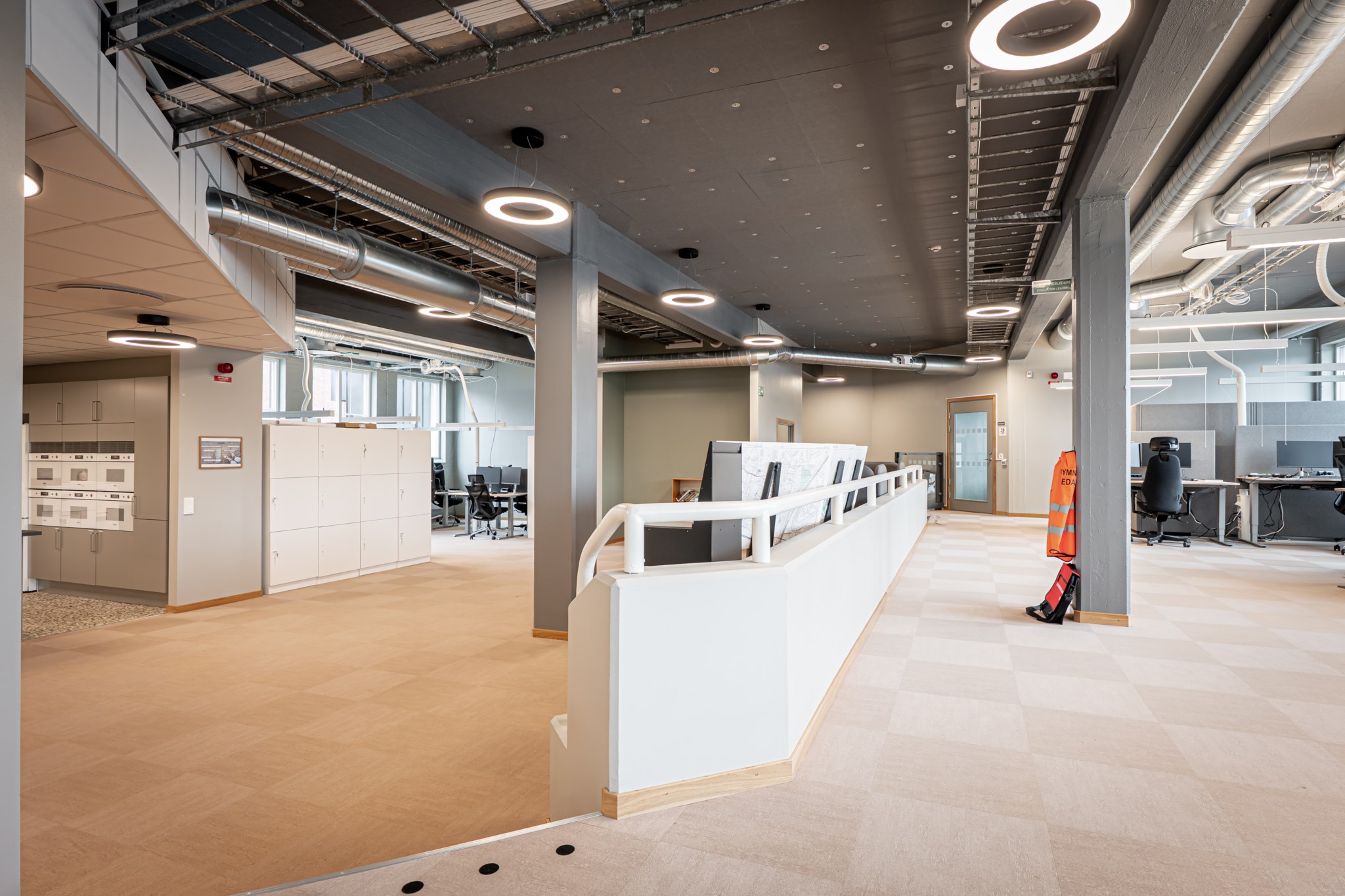 Byggnaden är uppdelad i fyra olika lokaler där samtliga har egen entré. Lokalerna är utformade enligt moderna kontorsstruktur med öppna kontorslandskap i kombination med cellkontor. Utöver detta finns även konferensutrymmen samt personalytor.