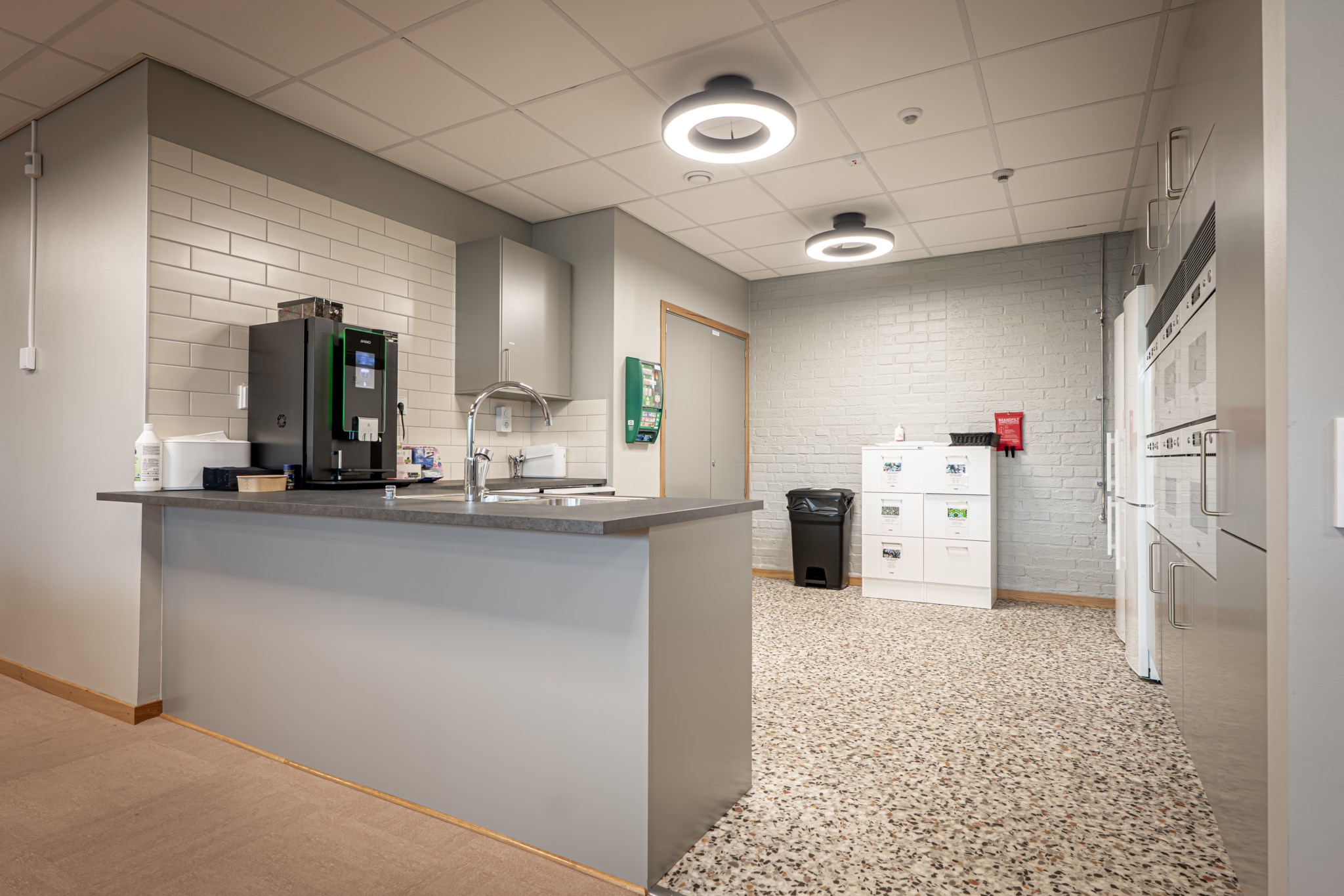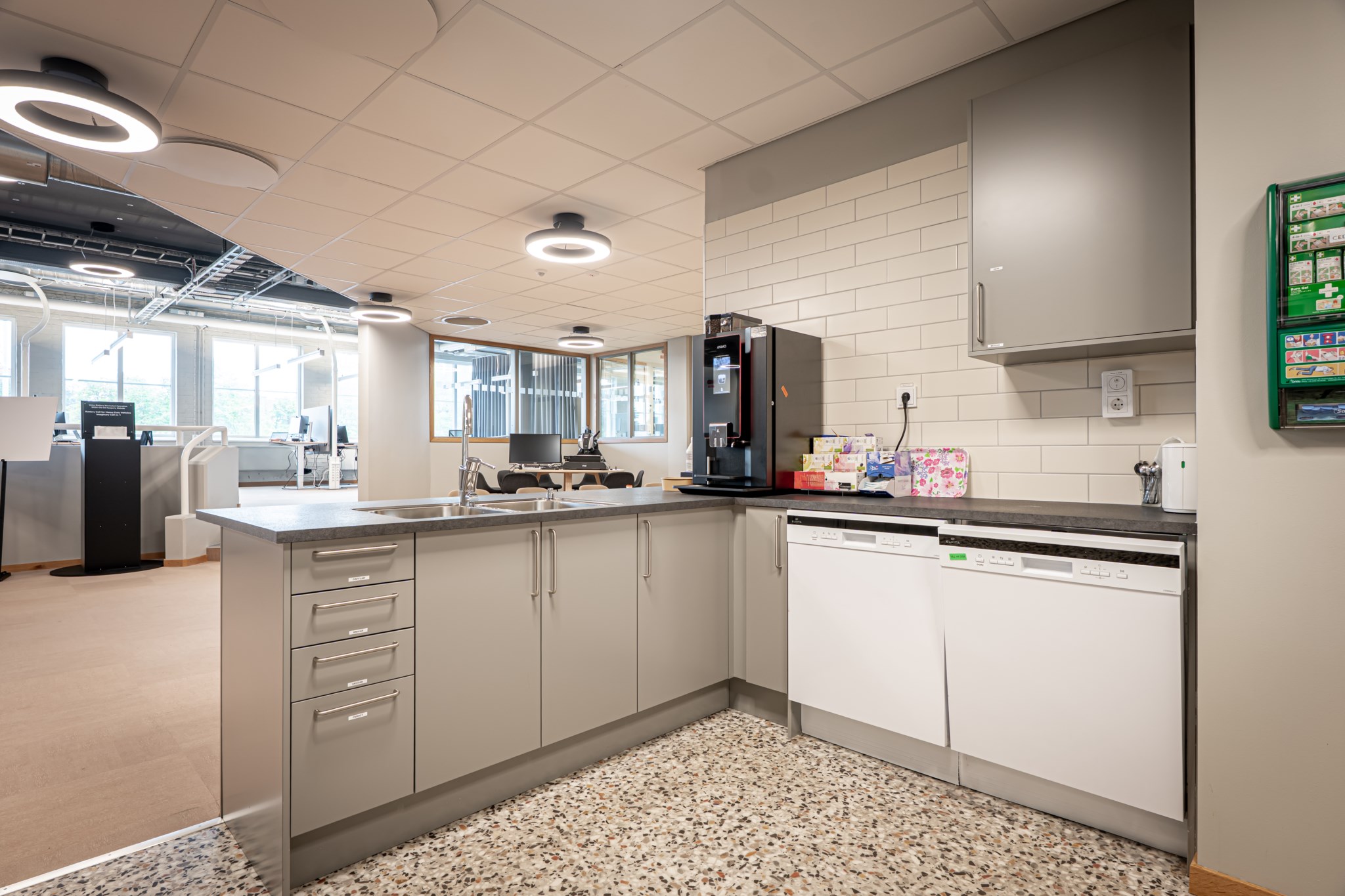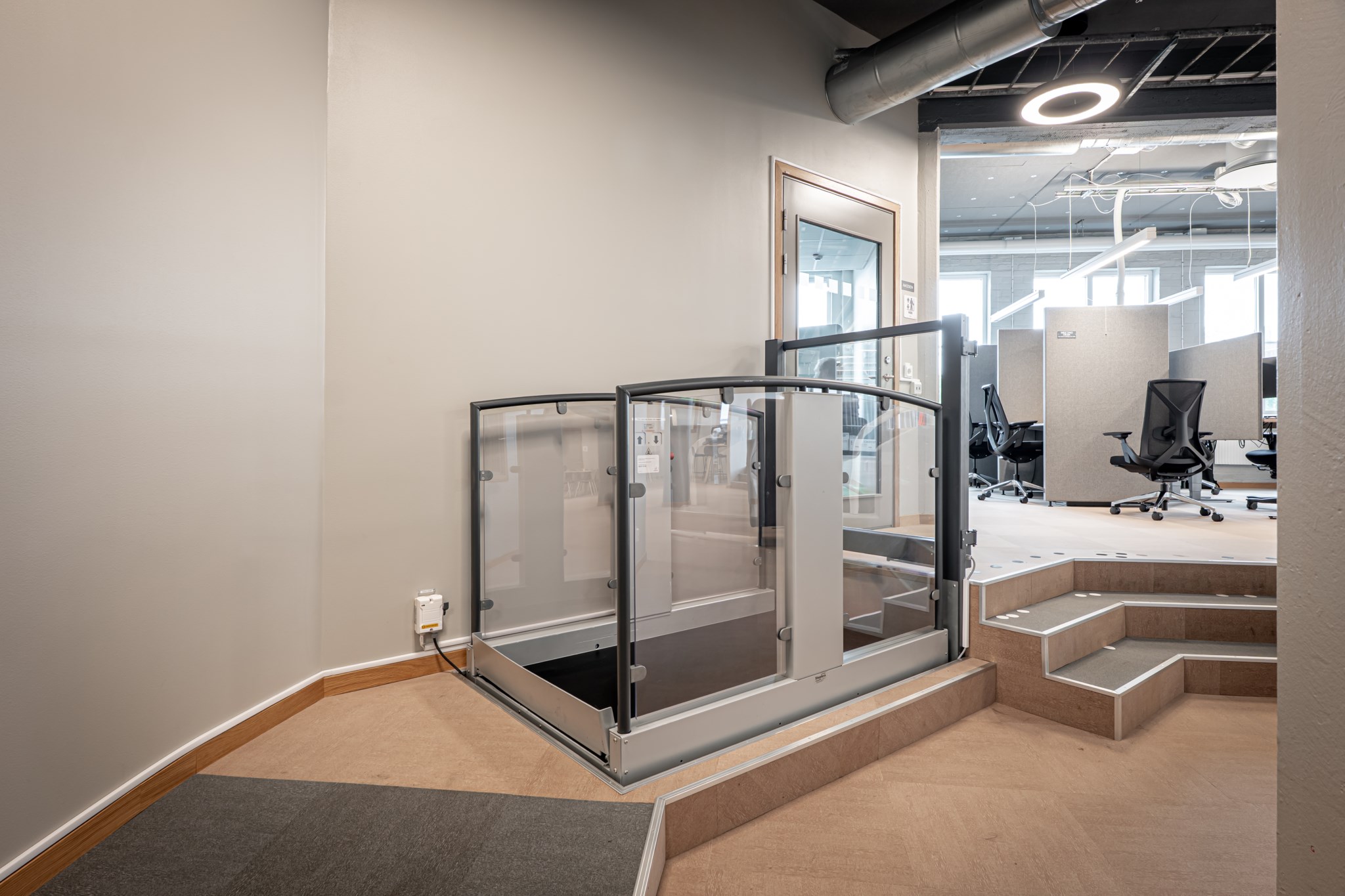 Byggnaden är uppdelad i fyra olika lokaler där samtliga har egen entré. Lokalerna är utformade enligt moderna kontorsstruktur med öppna kontorslandskap i kombination med cellkontor. Utöver detta finns även konferensutrymmen samt personalytor.
