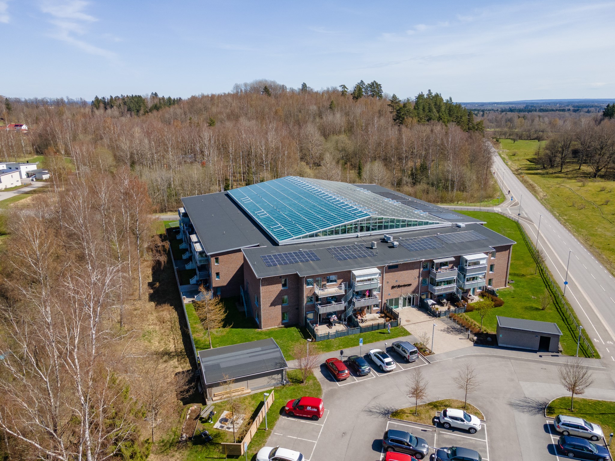 Palmer och medelhavsklimat är en dröm för många men en svår ekvation i Sverige golfströmmen till trots. Om man inte bor på Bovieran vill säga, där den stora inglasade vinterträdgården ger ett behagligt klimat större delen av året. Här finns en trädgård utöver det vanliga som varvas med diverse uteplatser, fiskdammar, boulebana, social gemenskap och ett behagligt klimat året om. Ett perfekt boende för dig över 55 år som värdesätter hög livskvalitet och social samvaro. Lägenheten som nu säljs är en tvårumslägenhet om 64 kvm och bjuder på en modern standard med helkaklat badrum, kök och vardagsrum i öppen planlösning. Utöver den gemensamma trädgården finns här också en egen balkong i södeläge med utsikt över grönskande naturområden och kohagar.