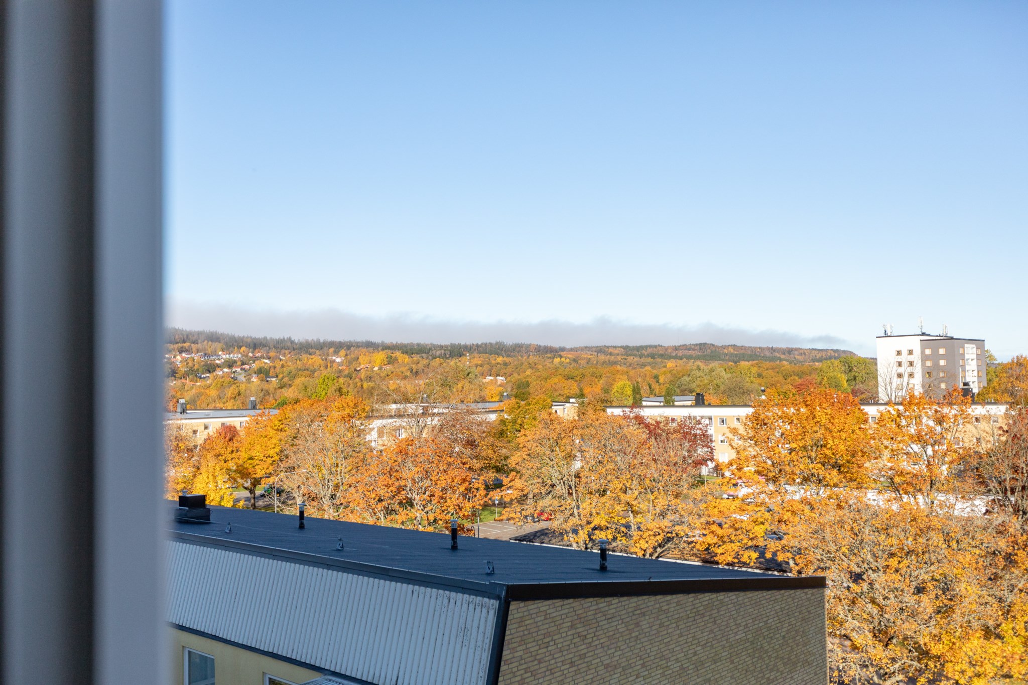 Högt upp i huset på sjätte våning med inglasad balkong och utsikt över stan och Billingen ligger denna fina lägenhet om ca 62,5 kvm. Här bor du i en välskött förening med god ekonomi och med närhet till fina naturområden som både Käpplunda och Havstenasjön inpå knuten och gångavstånd till Elins esplanad är det inte konstigt att det är ett populärt område att bo i.