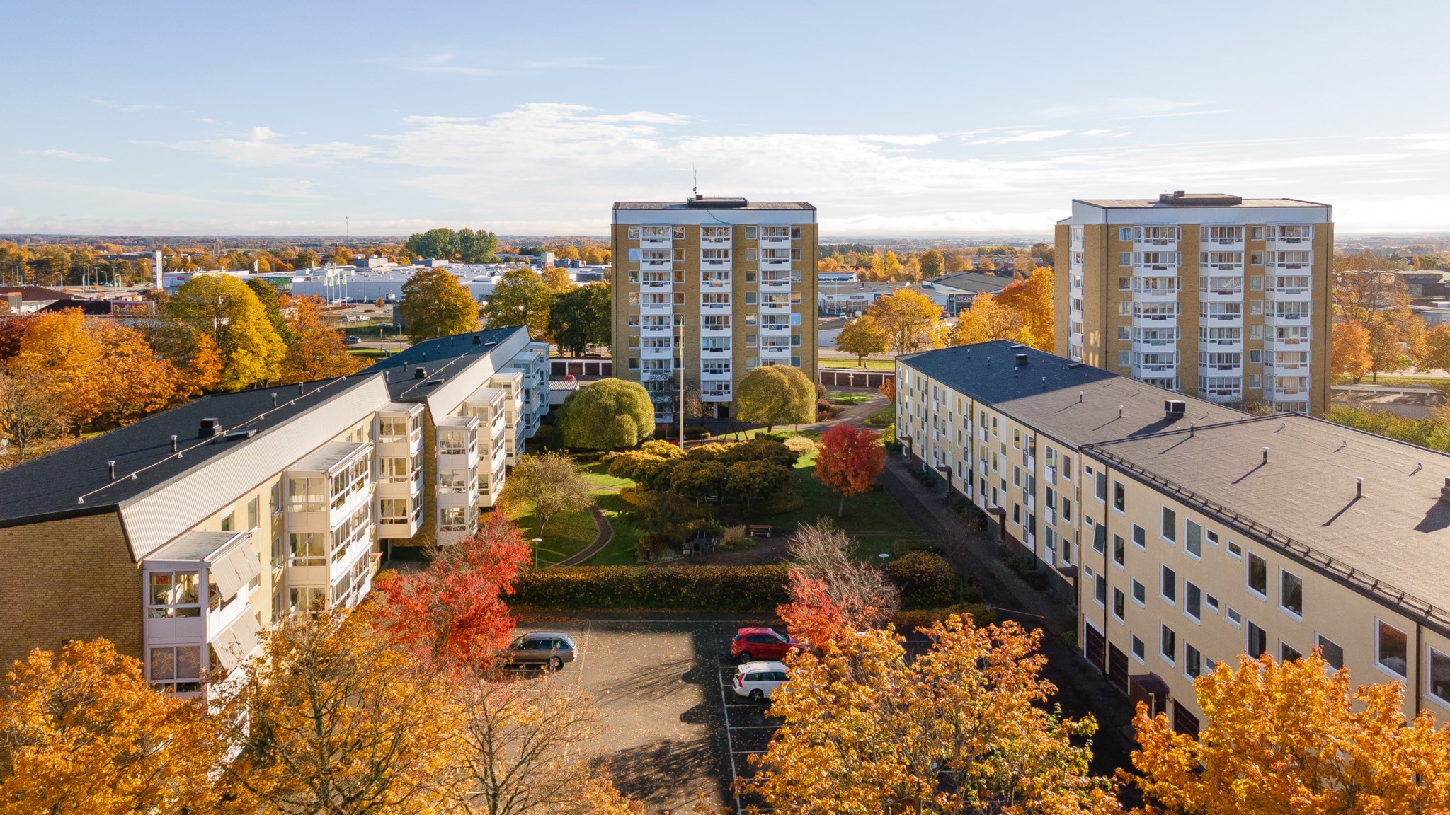 Föreningen är välskött vilket både husen och årsredovisning vittnar om. Föreningen förvaltar fyra byggnader varav två är höghus om 9 våningar och två lägre flerfamiljshus om 3 våningar. Denna lägenhet är belägen på våning sex i det norra höghuset. Det finns också diverse olika lokaler och gemensamma utrymmen som du kan läsa mer om på föreningens hemsida. Till lägenheten finns även två tillhörande förråd