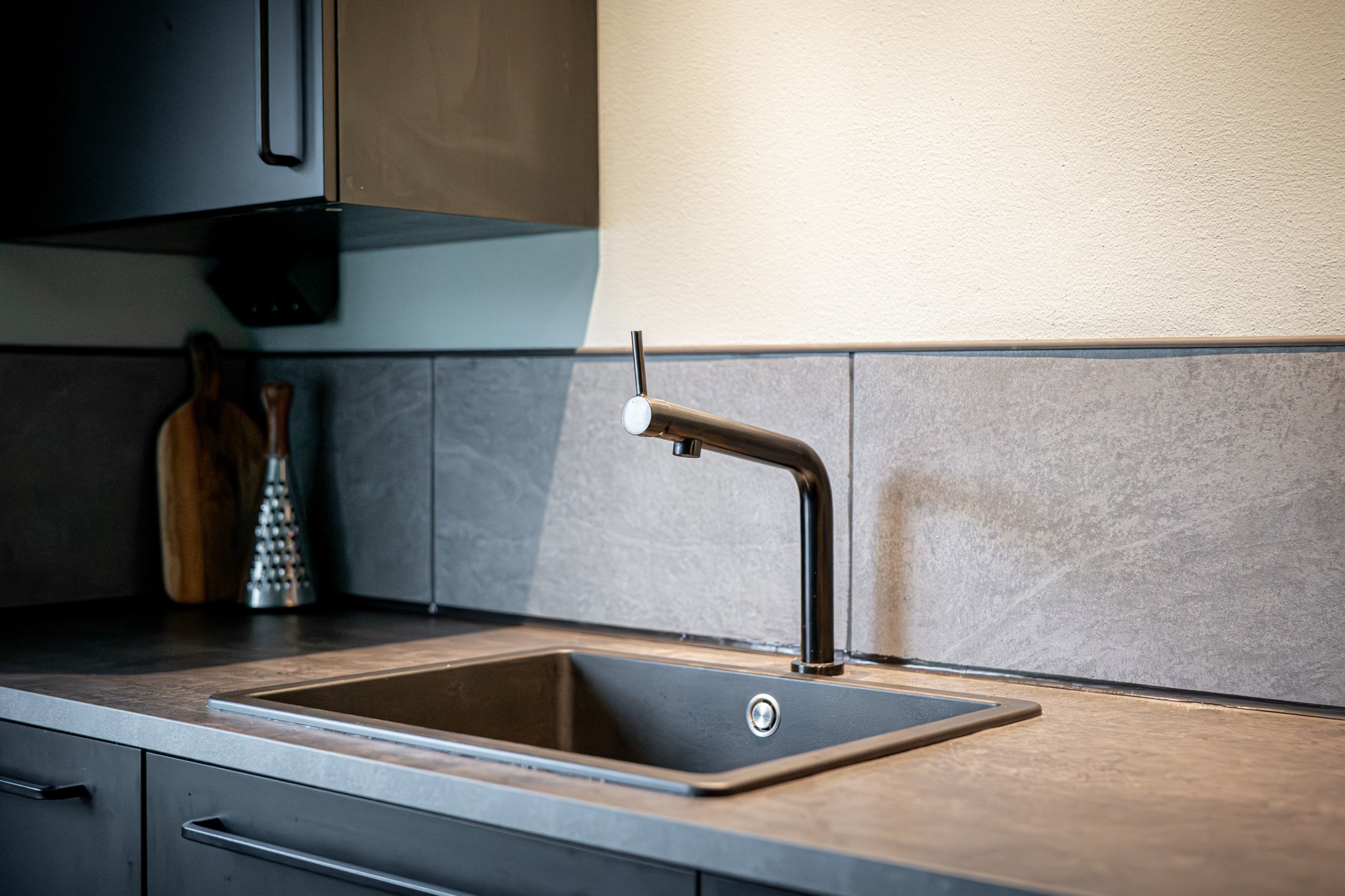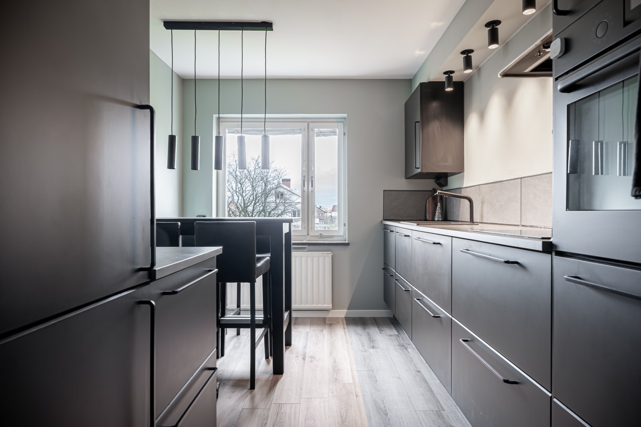 Kök som renoverades 2025 med moderna och stilrena materialval. Bra förvaring och funktionella arbetsytor i ett praktiskt utförande. Plats för mindre matbord vid fönster och fullt utrustat för vardagens behov.
