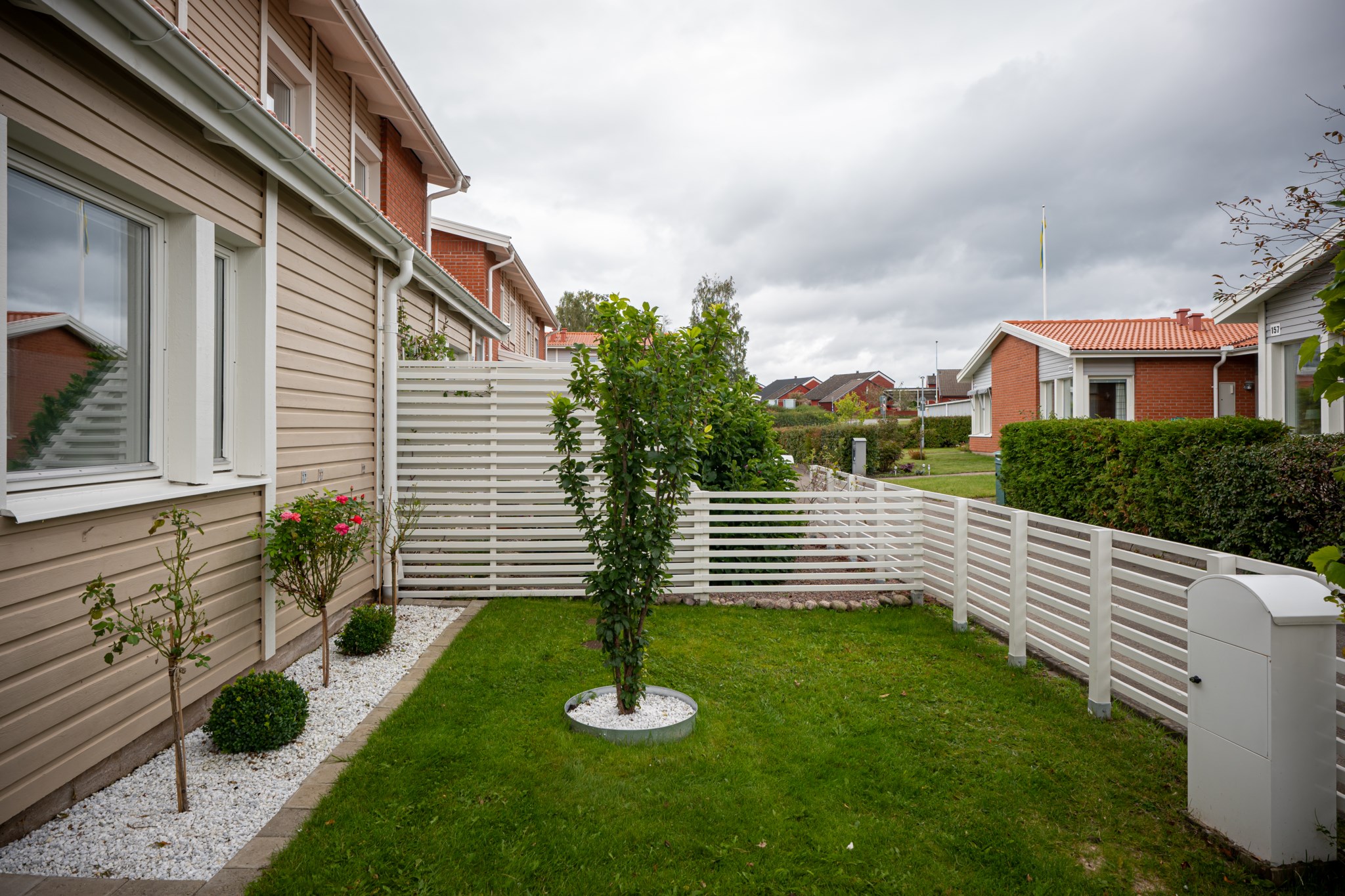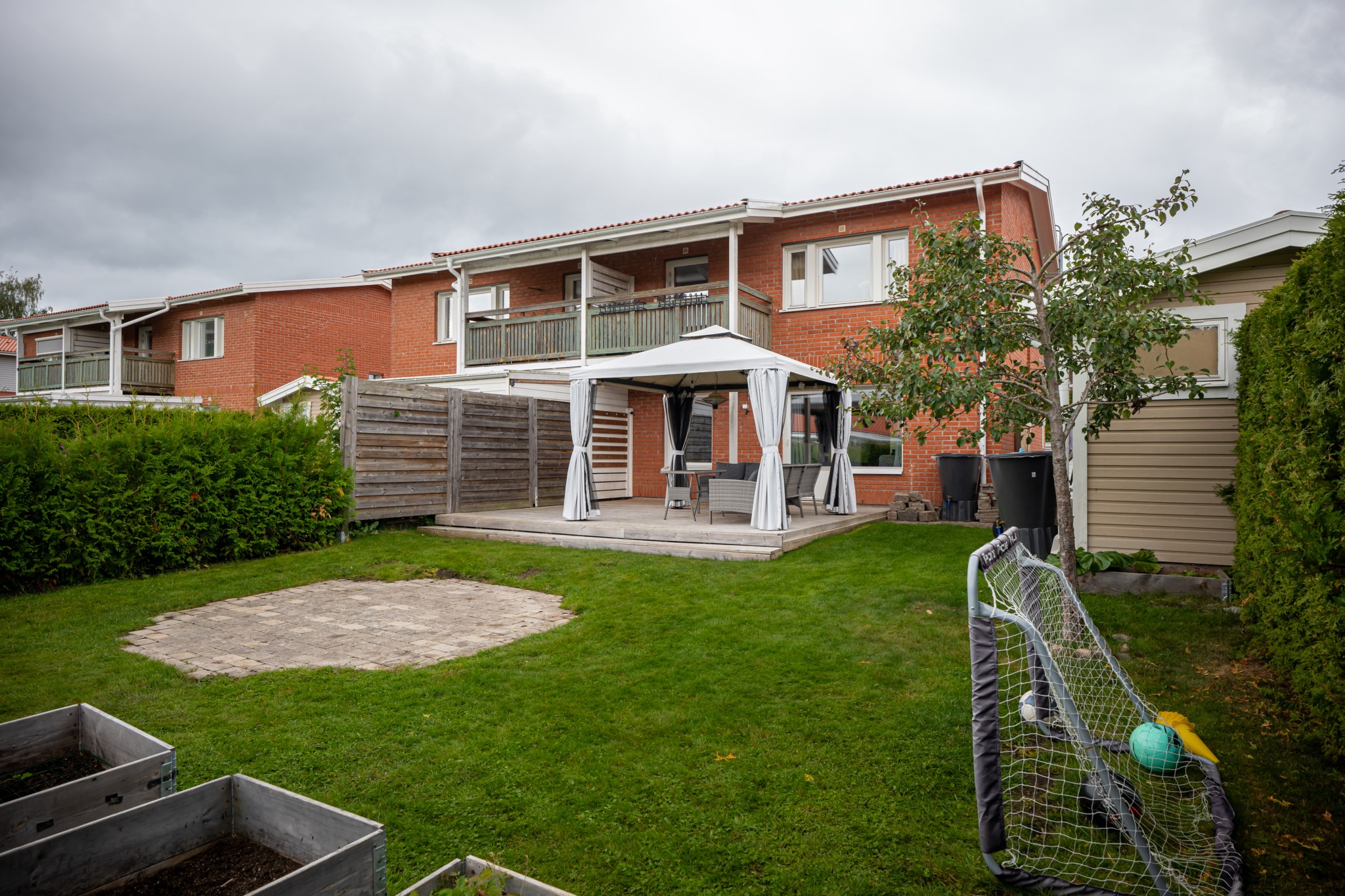 Perfekt boende för barnfamiljen i lugnt område utan trafik och lekplats precis utanför dörren. Bostaden är om 6 rum och kök i två plan med stora uteplatser och egen trädgård. Närhet till förskola och goda kommunikationer in till handelsområden och centrum. Garage ingår i månadsavgiften.