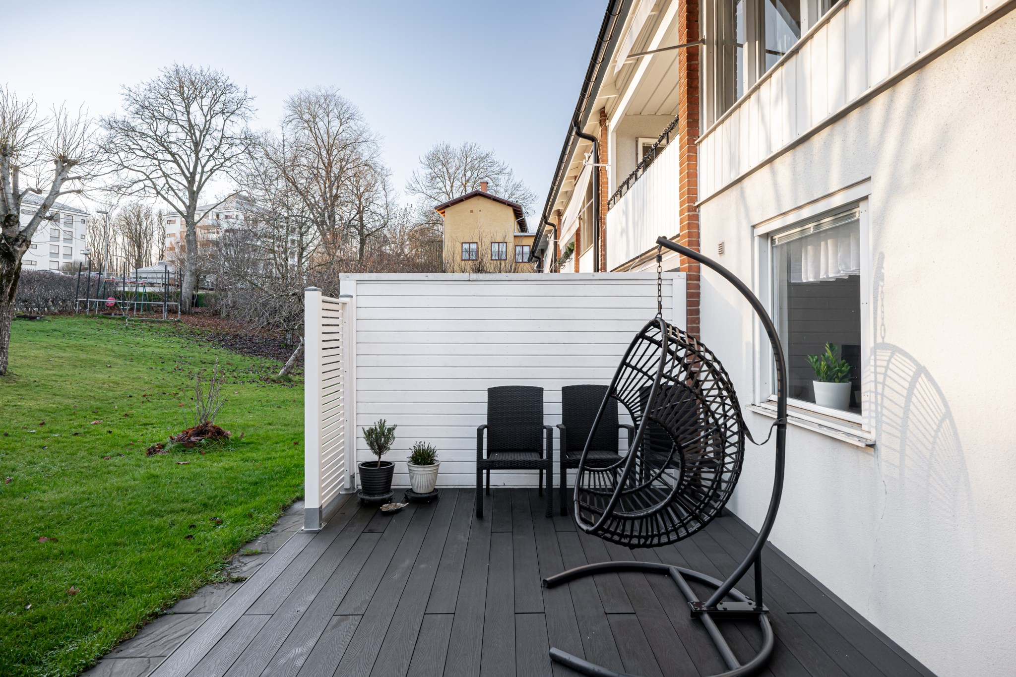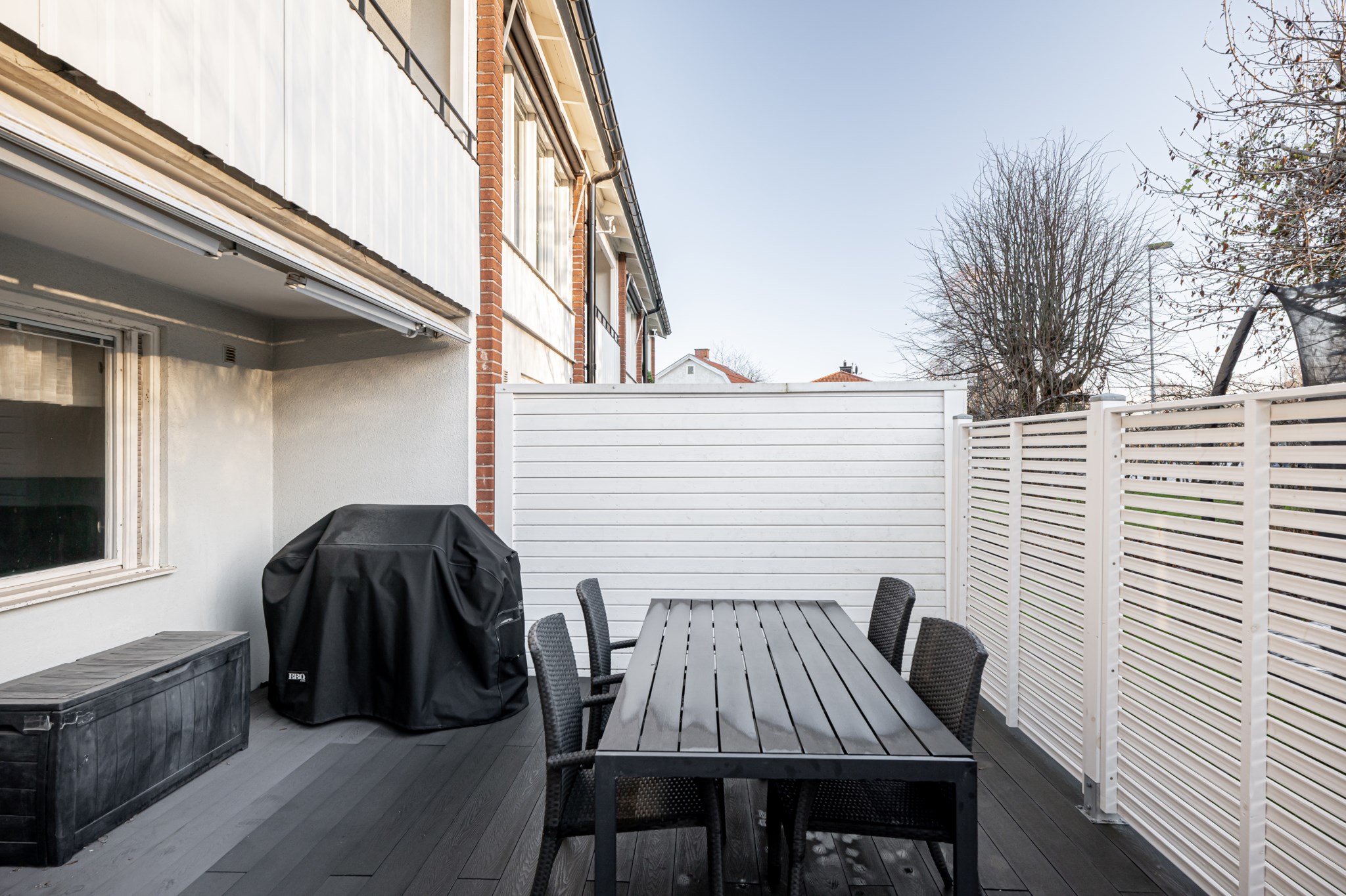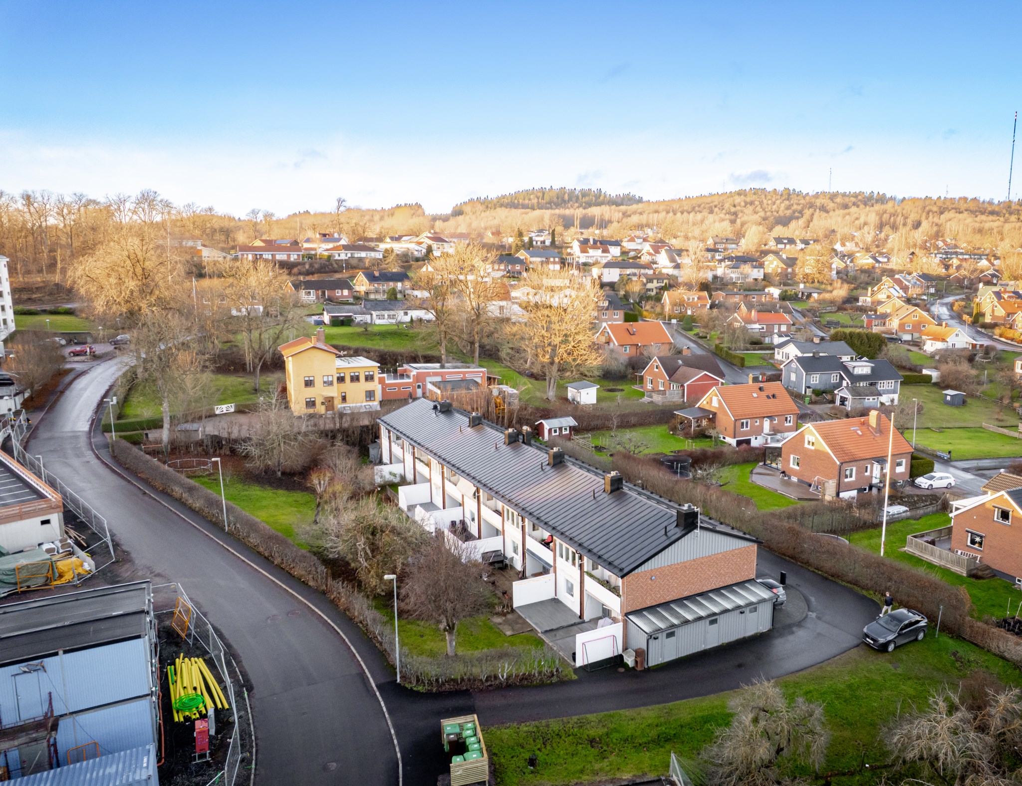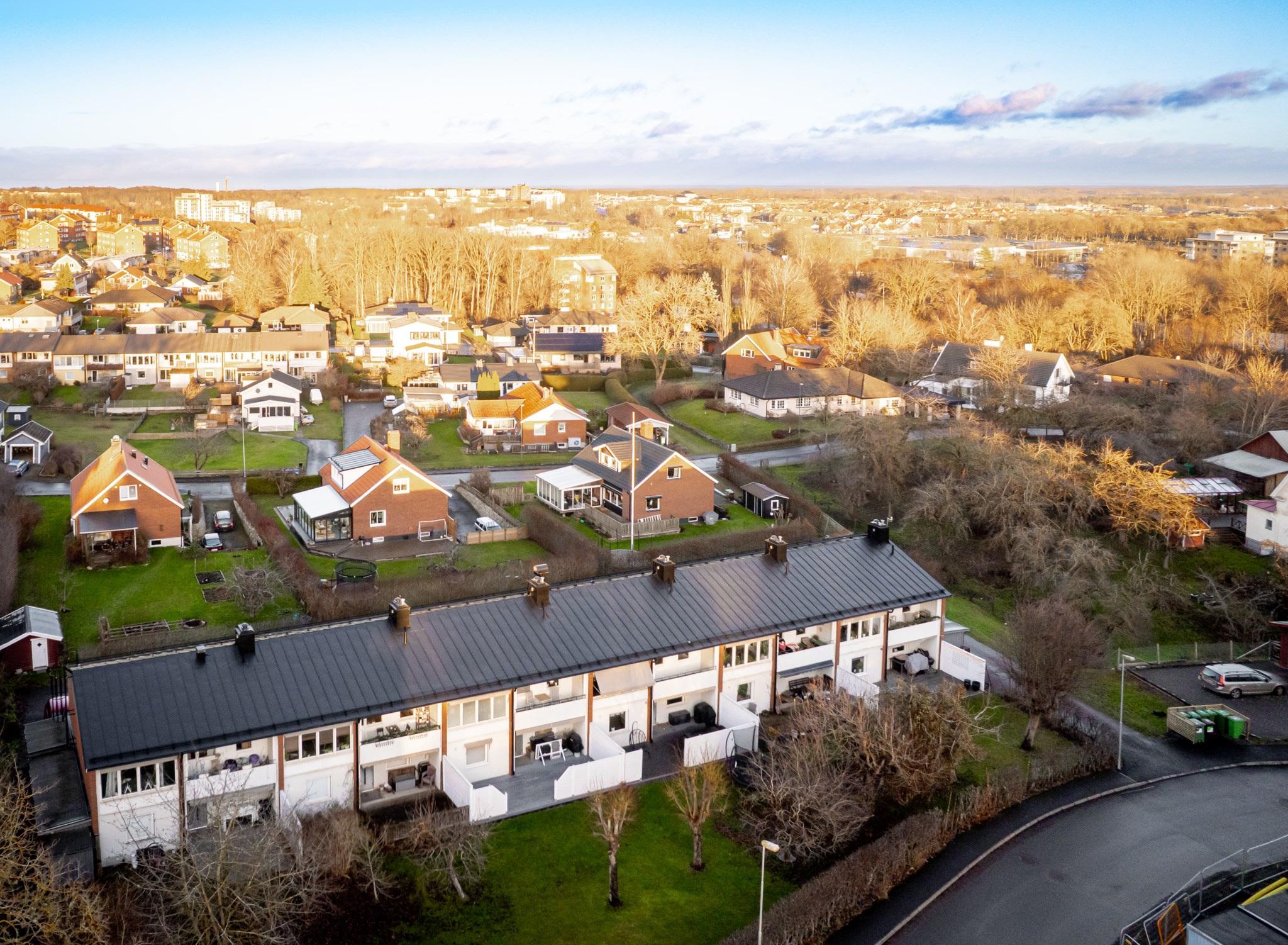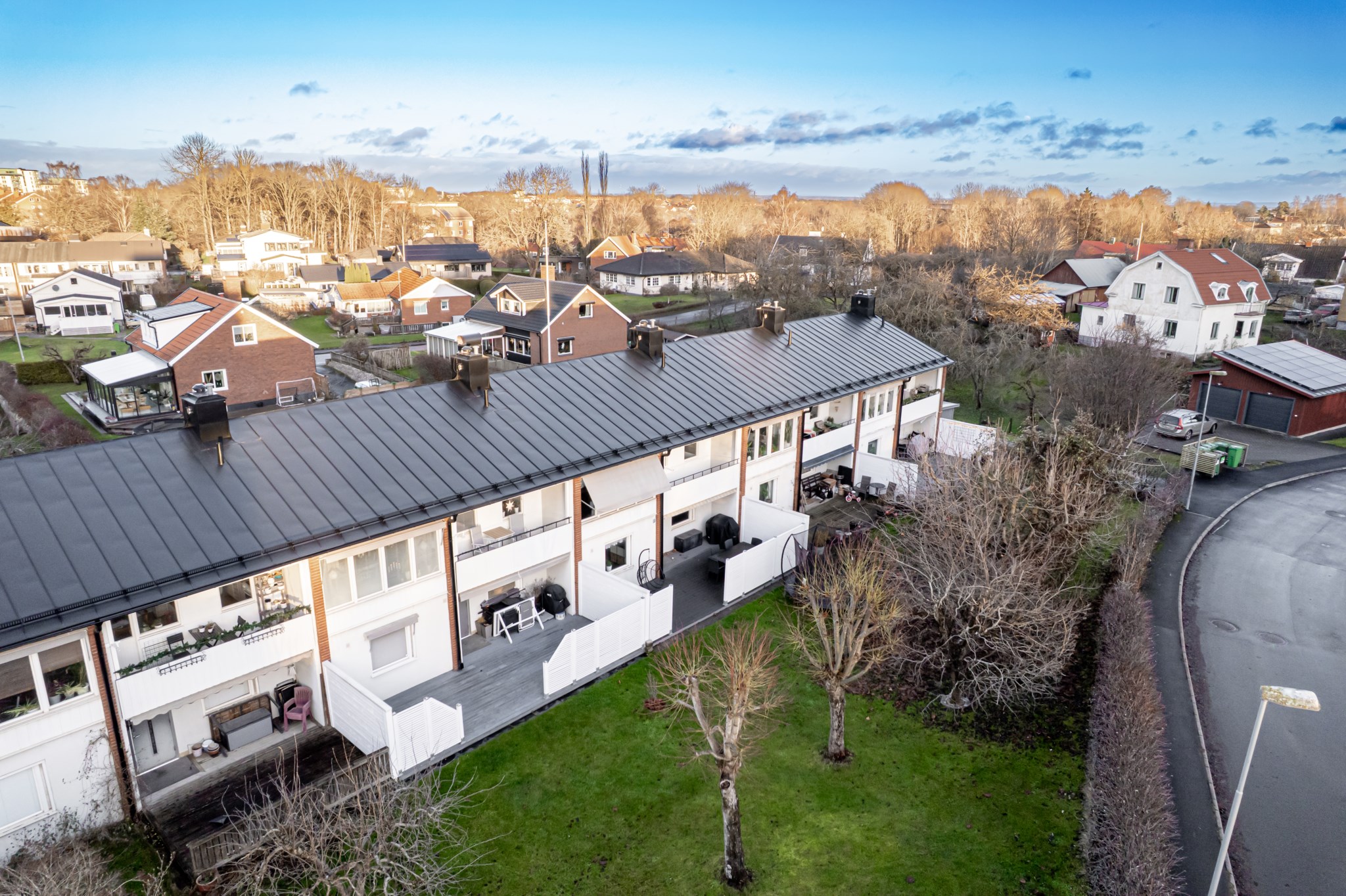 Radhusen är uppförda i två plan med garage i direkt anslutning till entrén och parkeringsmöjlighet precis utanför dörren, vilket ger ett praktiskt och lättskött boende. På baksidan finns en insynsskyddad uteplats och vidare södersidans trädgård. Föreningen är välskött och har en god ekonomi, vilket skapar trygghet för dig som köpare.